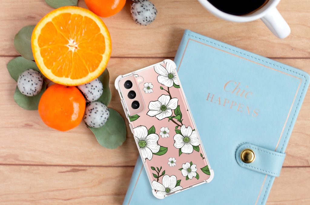 Ben je op zoek naar een uniek telefoonhoesje voor je Samsung Galaxy S21 FE? Dan ben je bij B2C Telecom aan het juiste adres! Speciaal voor jou hebben we dit prachtige Dogwood Flowers design in onze collectie hoesjes opgenomen. Het design wordt bedrukt op een Case en is gemaakt van flexibel rubber. Het hoesje is perfect voor de actieve smartphonegebruiker door de opstaande randen/hoeken. Denk aan mensen die veel sporten, reizen of wandelen en net iets meer zekerheid willen als het op hun geliefde telefoon aankomt. Het design wordt alleen aan de bovenkant van het hoesje bedrukt en de randen blijven transparant. Aan de zijkanten zijn uitsparingen gemaakt waardoor je met gemak alle knoppen en poorten kunt bedienen. Wij adviseren om dit hoesje in combinatie met een screenprotector te gebruiken voor een langere levensduur van je telefoon. Wil je dit hoesje nog iets extra's geven? Voeg dan gratis je naam of een quote toe! Is dit design hoesje toch niet helemaal wat je zocht? Ontwerp dan zelf een hoesje in ons ontwerpprogramma.