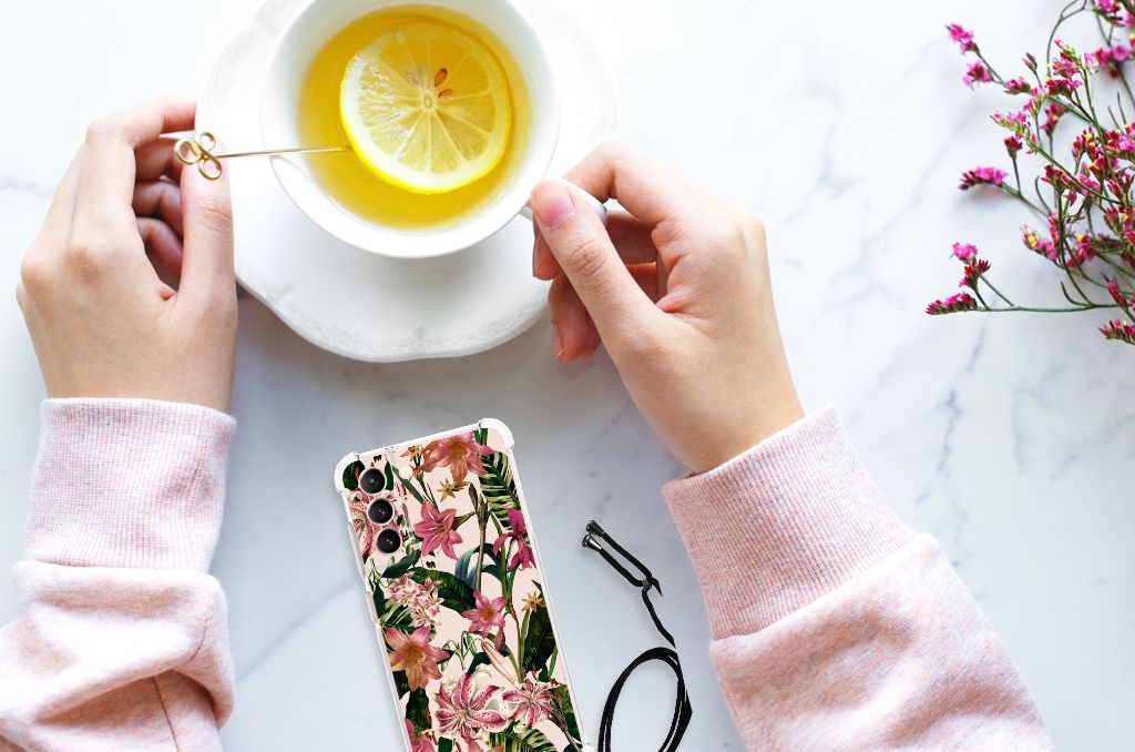Ben je op zoek naar een uniek telefoonhoesje voor je Samsung Galaxy S21 FE? Dan ben je bij B2C Telecom aan het juiste adres! Speciaal voor jou hebben we dit prachtige Flowers design in onze collectie hoesjes opgenomen. Het design wordt bedrukt op een Case en is gemaakt van flexibel rubber. Het hoesje is perfect voor de actieve smartphonegebruiker door de opstaande randen/hoeken. Denk aan mensen die veel sporten, reizen of wandelen en net iets meer zekerheid willen als het op hun geliefde telefoon aankomt. Het design wordt alleen aan de bovenkant van het hoesje bedrukt en de randen blijven transparant. Aan de zijkanten zijn uitsparingen gemaakt waardoor je met gemak alle knoppen en poorten kunt bedienen. Wij adviseren om dit hoesje in combinatie met een screenprotector te gebruiken voor een langere levensduur van je telefoon. Wil je dit hoesje nog iets extra's geven? Voeg dan gratis je naam of een quote toe! Is dit design hoesje toch niet helemaal wat je zocht? Ontwerp dan zelf een hoesje in ons ontwerpprogramma.