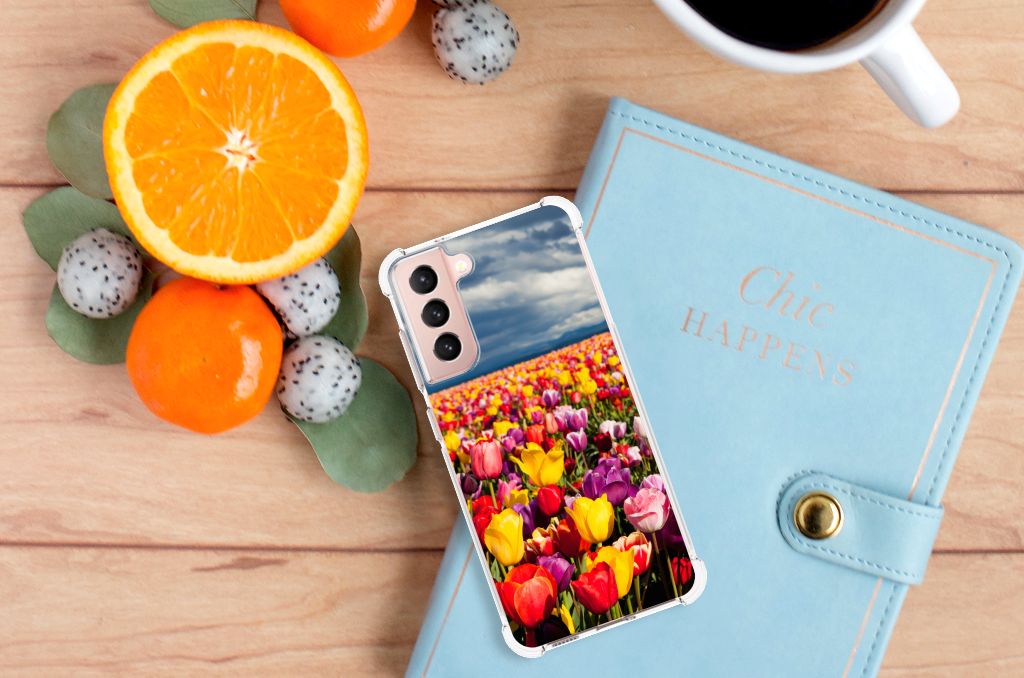 Ben je op zoek naar een uniek telefoonhoesje voor je Samsung Galaxy S21 FE? Dan ben je bij B2C Telecom aan het juiste adres! Speciaal voor jou hebben we dit prachtige Tulpen design in onze collectie hoesjes opgenomen. Het design wordt bedrukt op een Case en is gemaakt van flexibel rubber. Het hoesje is perfect voor de actieve smartphonegebruiker door de opstaande randen/hoeken. Denk aan mensen die veel sporten, reizen of wandelen en net iets meer zekerheid willen als het op hun geliefde telefoon aankomt. Het design wordt alleen aan de bovenkant van het hoesje bedrukt en de randen blijven transparant. Aan de zijkanten zijn uitsparingen gemaakt waardoor je met gemak alle knoppen en poorten kunt bedienen. Wij adviseren om dit hoesje in combinatie met een screenprotector te gebruiken voor een langere levensduur van je telefoon. Wil je dit hoesje nog iets extra's geven? Voeg dan gratis je naam of een quote toe! Is dit design hoesje toch niet helemaal wat je zocht? Ontwerp dan zelf een hoesje in ons ontwerpprogramma.