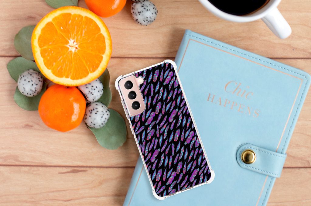 Ben je op zoek naar een uniek telefoonhoesje voor je Samsung Galaxy S21 FE? Dan ben je bij B2C Telecom aan het juiste adres! Speciaal voor jou hebben we dit prachtige Feathers Color design in onze collectie hoesjes opgenomen. Het design wordt bedrukt op een Doorzichtige Silicone Hoesje en is gemaakt van flexibel rubber. Het hoesje is perfect voor de actieve smartphonegebruiker door de opstaande randen/hoeken. Denk aan mensen die veel sporten, reizen of wandelen en net iets meer zekerheid willen als het op hun geliefde telefoon aankomt. Het design wordt alleen aan de bovenkant van het hoesje bedrukt en de randen blijven transparant. Aan de zijkanten zijn uitsparingen gemaakt waardoor je met gemak alle knoppen en poorten kunt bedienen. Wij adviseren om dit hoesje in combinatie met een screenprotector te gebruiken voor een langere levensduur van je telefoon. Wil je dit hoesje nog iets extra's geven? Voeg dan gratis je naam of een quote toe! Is dit design hoesje toch niet helemaal wat je zocht? Ontwerp dan zelf een hoesje in ons ontwerpprogramma.