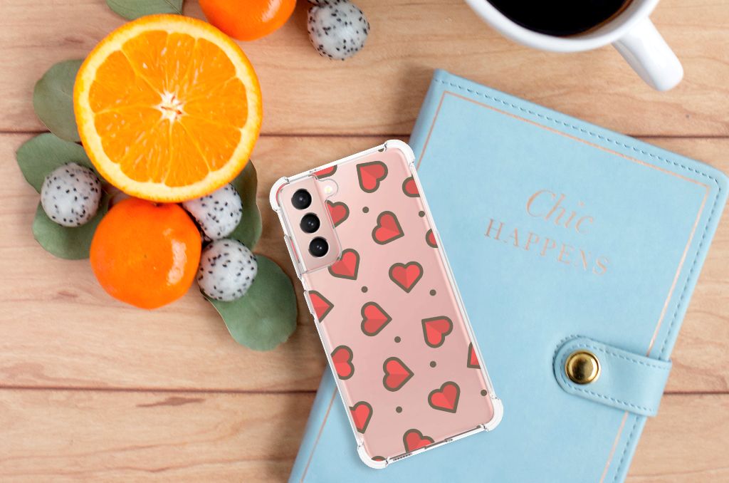Ben je op zoek naar een uniek telefoonhoesje voor je Samsung Galaxy S21 FE? Dan ben je bij B2C Telecom aan het juiste adres! Speciaal voor jou hebben we dit prachtige Hearts design in onze collectie hoesjes opgenomen. Het design wordt bedrukt op een Doorzichtige Silicone Hoesje en is gemaakt van flexibel rubber. Het hoesje is perfect voor de actieve smartphonegebruiker door de opstaande randen/hoeken. Denk aan mensen die veel sporten, reizen of wandelen en net iets meer zekerheid willen als het op hun geliefde telefoon aankomt. Het design wordt alleen aan de bovenkant van het hoesje bedrukt en de randen blijven transparant. Aan de zijkanten zijn uitsparingen gemaakt waardoor je met gemak alle knoppen en poorten kunt bedienen. Wij adviseren om dit hoesje in combinatie met een screenprotector te gebruiken voor een langere levensduur van je telefoon. Wil je dit hoesje nog iets extra's geven? Voeg dan gratis je naam of een quote toe! Is dit design hoesje toch niet helemaal wat je zocht? Ontwerp dan zelf een hoesje in ons ontwerpprogramma.