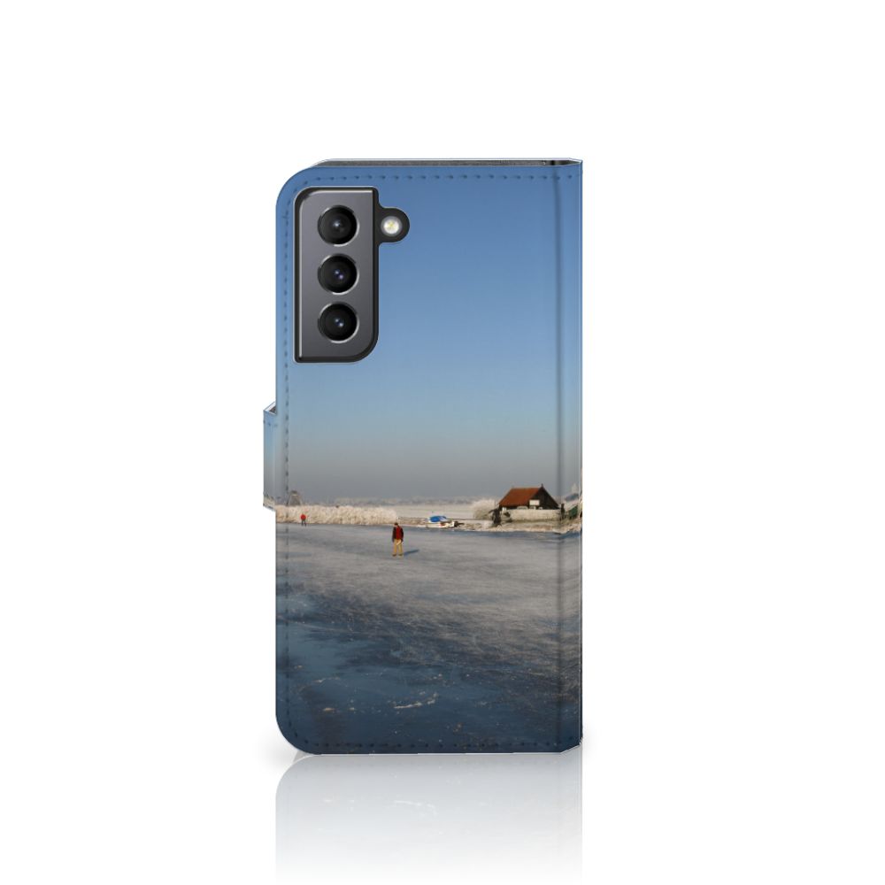 Dit mooie Samsung Galaxy S21 FE Flip Cover met schaatsers is een typisch Hollands product. Schaatsen is een van de oudste Nederlandse volkssporten en wordt van jongs af aan geleerd. Hoewel schaatsen ook in andere landen van het noordelijk halfrond in trek is, met name in Scandinavië (Zweden, Finland, Noorwegen), blinken Nederlanders er pas echt in uit. Mocht jij met dit hoesje met schaatsers in het buitenland aankomen zetten, dan is het meteen duidelijk waar je vandaan komt. Deze bookstyle case is perfect op maat gemaakt en heeft verschillende vakjes voor pasjes en briefgeld. Daarnaast is het magnetisch lipje aan de buitenkant zeer handig. Alle zijden van de case worden bedrukt met schaatsers en de houder aan de binnenzijde is van tpu. Dit is erg flexibel.