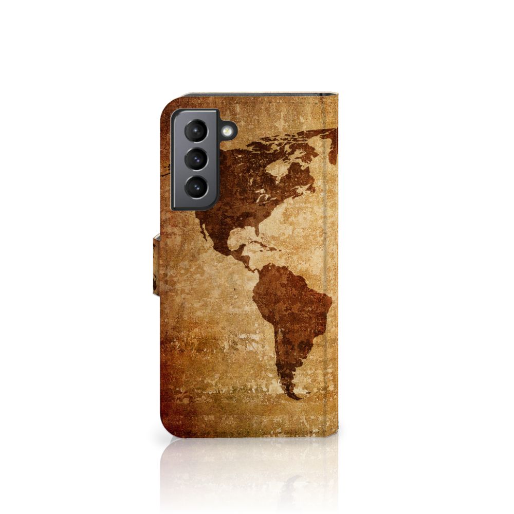 Samsung Galaxy S21 FE Flip Cover met pasjes Wereldkaart