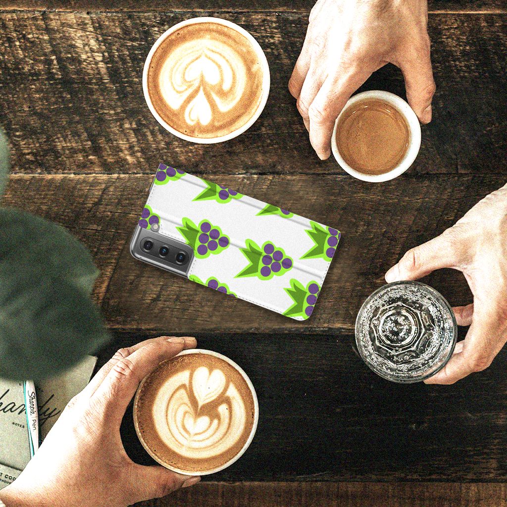 Druiven worden ook wel de ‘koningin van het fruit’ genoemd. Dus komen ze uiteraard aan bod in ons assortiment design hoesjes. Een Samsung Galaxy S21 FE Flip Style Cover met een tros blauwe druiven maakt je ontzettend trots. Juist omdat het zo goed past bij jouw smartphone. Doordat er veel verschillende soorten druiven bestaan - groene, rode en zelfs zwarte - is het aanbod ontzettend groot. Ons aanbod stand cases met blauwe druiven is ook zeer groot, je zult niet snel achter het net vissen. Het stand hoesje met druiven design heeft een vakje aan de binnenzijde, waarin je jouw rijbewijs of je creditcard kunt stoppen. Dit leuke stand hoesje met blauwe druiven wordt aan de binnenzijde afgesloten met een magneet. Verder klemt de tpu houder aan de binnenzijde perfect om jouw telefoon. Ben je op zoek naar hoesjes met ander fruit erop? Je komt aan je trekken als je ons assortiment design hoesjes bekijkt.