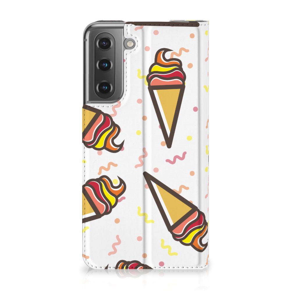 Een vrolijke Samsung Galaxy S21 FE Flip Style Cover met daarop verschillende ijsjes. Als je daar geen zomers gevoel meer van krijgt, weten wij het ook niet meer. De zomer en ijsjes zijn onlosmakelijk met elkaar verbonden. Tijdens een bezoekje aan het strand mag een lekker ijsje bijvoorbeeld niet ontbreken. Een design hoesje met lekkere Icecream print past daar natuurlijk ook ontzettend goed bij. Jouw telefoon is helemaal beschermd met een stand case met ijsjes design. De aankoop van deze case is een heerlijke investering, die zich gegarandeerd terugbetaalt. Alle zijden van dit hoesje worden bedrukt met ijsjes. De case heeft een speciale standaard en de houder aan de binnenzijde is van TPU. Onder alle weersomstandigheden zal deze case met opbergvakje perfect functioneren, ook in de zomer met een ijsje in je hand. Dit smaakvolle hoesje is zeer goedkoop te bestellen en wordt zeer snel bezorgd.