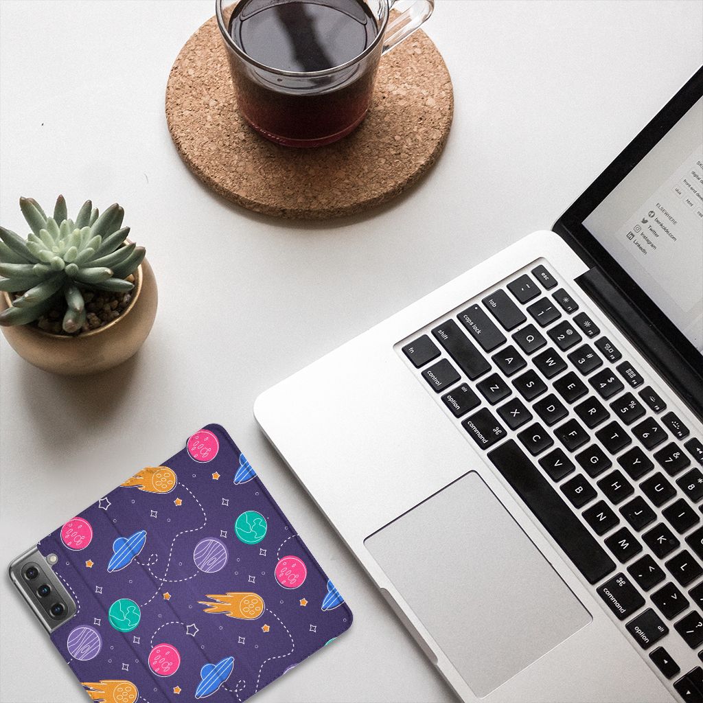Ben je een beetje geïnteresseerd in buitenaards leven? Dan kan je wel eens enthousiast raken van deze Samsung Galaxy S21 FE Hippe Standcase met Space print. Dus mensen die van science fiction houden zullen deze case ongetwijfeld mooi vinden. Er zijn verschillende planeten en vliegende schotels te ontdekken in dit design hoesje. Dit kunstwerkje is voor heel weinig geld te bestellen op onze website. Je krijgt er maximale bescherming van je smartphone voor terug. De stand case beschermt jouw telefoon aan alle kanten en beschikt over een 1 opbergvakje en een speciale standaard. Het hoesje wordt afgesloten met een magneet aan de binnenzijde. De houder aan de binnenzijde is van TPU. Je zult ontdekken dat dit hele stevige telefoonhoesje een heel goede bescherming biedt tegen alle vormen van schade. Met dit hoesje hoef je niet bang te zijn dat er krassen op je design komen of scheuren in je scherm.