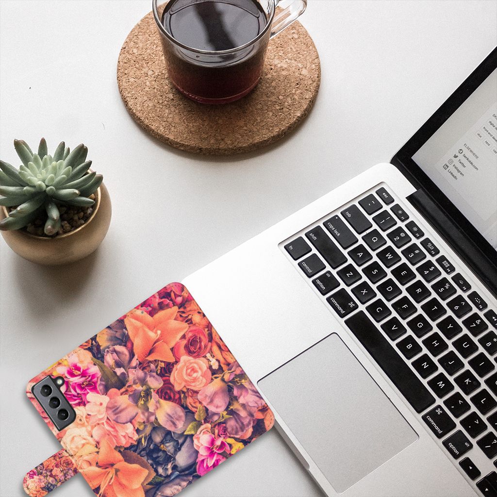 Bijna iedereen wordt wel blij van een bosje bloemen en dus worden we ook blij als er bloemen op ons boekhoesje staan afgebeeld. Dit boeket van roze, oranje en paarse bloemen is lekker opvallend maar geeft het Samsung Galaxy S21 FE Hoesje ook een sierlijke uitstraling. Zo wordt je direct vrolijk als je bezig bent met jouw smartphone, bijvoorbeeld tijdens het appen of bellen. Waar je ook vrolijk van zult worden is de goede bescherming die dit smartphone hoesje biedt. Het is een boekhoesje waardoor alle zijden van jouw telefoon worden beschermd. Als hij dan per ongeluk een keer op de grond valt, is er niets aan de hand. Door het magnetische sluitlipje blijft ook het beeldscherm beschermd als hij de grond raakt.