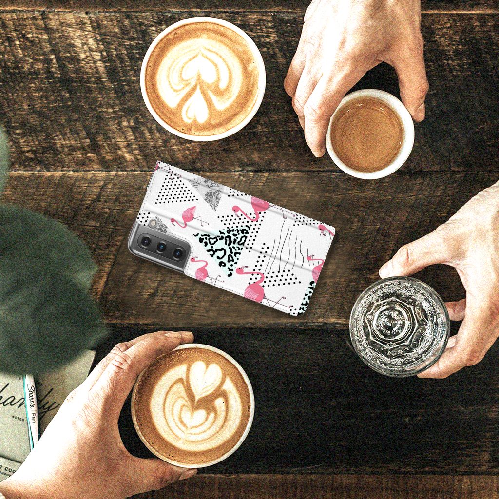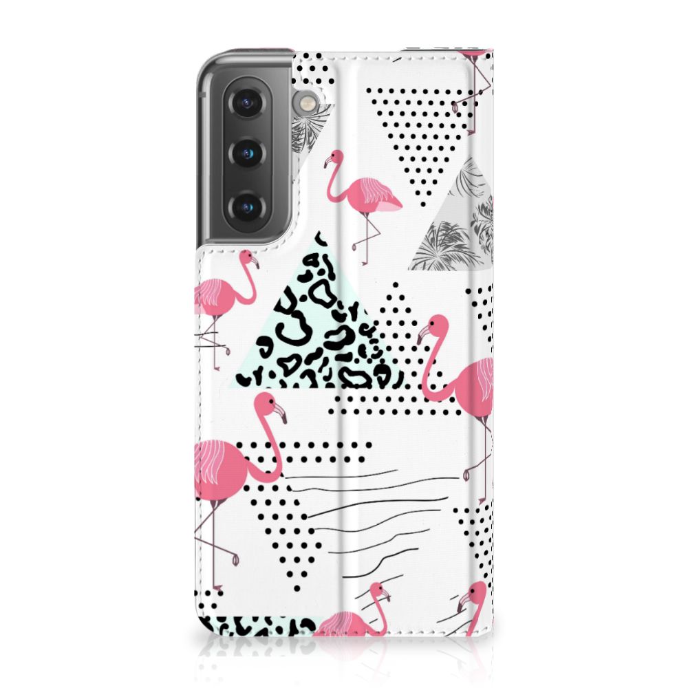 Een Samsung Galaxy S21 FE Hoesje maken met Flamingo Triangle is in vele opzichten bijzonder. De rode flamingo op het hoesje komt oorspronkelijk uit het Caraïbische gebied. Stel dat je in deze regio vakantie viert, dan val je zonder meer op met dit hoesje met flamingo’s en driehoeken. Deze stand case biedt bescherming voor alle zijden van je telefoon. Jouw smartphone ligt goed opgeborgen in de TPU houder aan de binnenzijde en in dit gedeelte van het hoesje met flamingo’s en driehoeken zit de magnetische sluiting. Ook de palmbomen op deze stand case bieden het ultieme vakantiegevoel. De stand case met flamingo’s en driehoeken heeft vakjes voor pasjes en is op maat gemaakt.