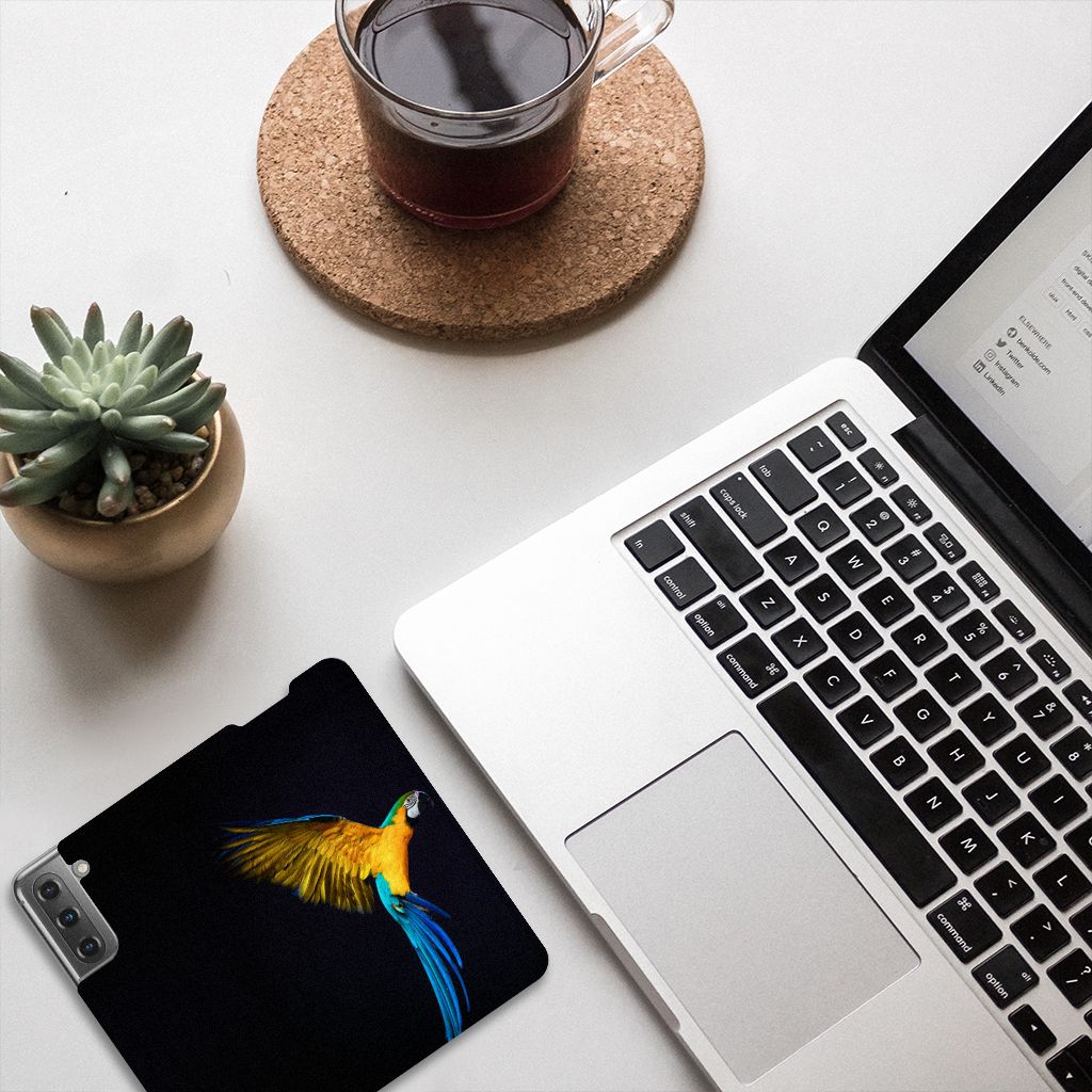 Dit design hoesje met Papegaai tegen een zwarte achtergrond is de perfecte bescherming voor jouw smartphone. Dit komt vooral omdat deze print op een stand case staat. Dit zijn onze meest populaire hoesjes, die de telefoon aan alle zijden beschermen. Alle zijden van de Samsung Galaxy S21 FE Hoesje maken worden bedrukt met deze schitterende print. Papegaaien zijn erg sociale vogels die voldoende aandacht en gezelschap nodig hebben. Als je er voor kiest om een papegaai aan te schaffen, is het een goed idee om een koppeltje te nemen. Koop je meerdere stand cases met een papegaai, dan ga je automatisch minder betalen per hoesje. Wij hanteren een systeem van bundelkorting. Dus koop dit hoesje met een houder voor een pasje en TPU houder aan de binnenkant voor een spotprijs.