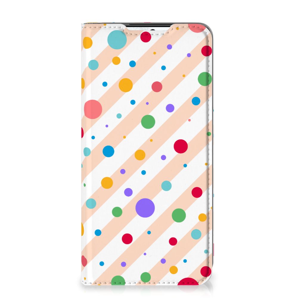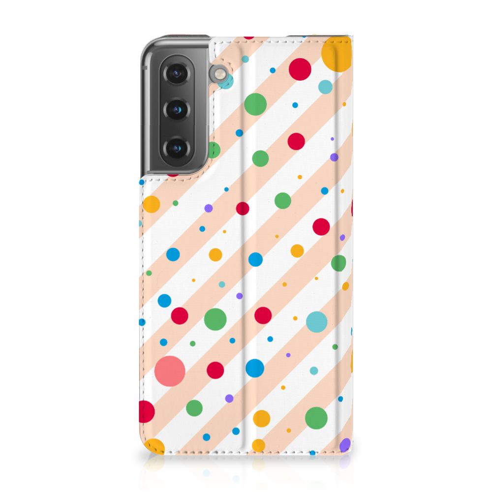 Een Samsung Galaxy S21 FE Hoesje met Magneet met verschillende kleuren stippen is een schitterende bescherming van jouw smartphone. De stand case met het design Dots in alle kleuren van de regenboog komt voor jou als geroepen. Maak je geen gebruik van dit zeer mooie hoesje, dan kan het met jouw smartphone een beetje beroerd aflopen. Dit mooie stand hoesje met verschillende kleuren stippen zorgt voor een volledige bescherming van je smartphone en wordt aan alle zijden bedrukt. Dankzij de speciale standaard kun je rustig achteroverleunend filmpjes bekijken terwijl je je handen vrij hebt. Verder is de houder aan de binnenzijde van TPU. Jouw telefoon is dus zeer goed opgeborgen en kan geen kant op. Met een hoesje met stippen in verschillende kleuren op alle zijden blijft jouw telefoon volledig in tact. Heb je liever een stand case met stippen in andere opvallende kleuren? Ontwerp dan zelf case met je eigen foto’s en teksten!