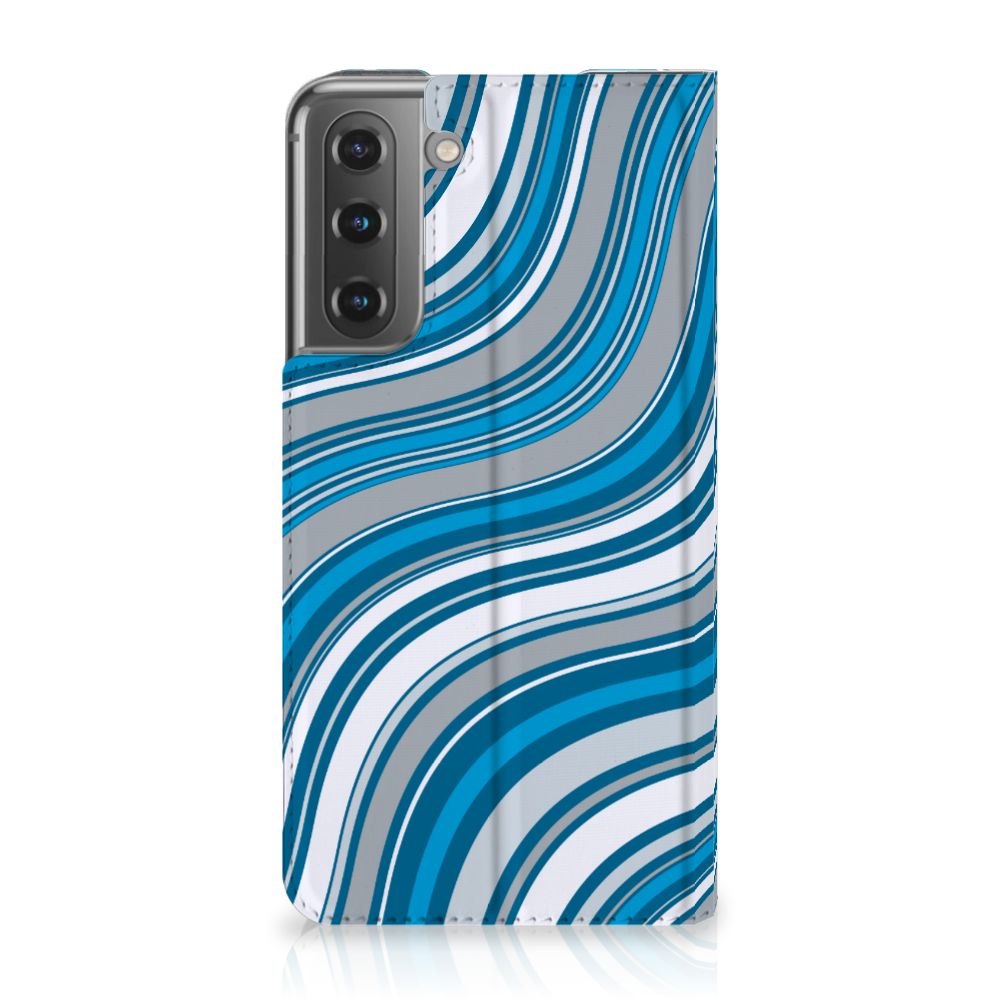 Zeer cool, dit hoesje met vooral blauwe kleuren, die in een golvende beweging jouw telefoon van een mooie uitstraling voorzien. Tijdens een zonnige vakantie aan zee is jouw smartphone perfect beschermd met dit telefoonhoesje. Het design Waves Blue van dit smartphone hoesje doet lichtjes denken aan een lolly, waarmee je een klein kind zeer blij maakt. Jouw Samsung Galaxy S21 FE zal er ook zeer vrolijk uitzien samen met dit design hoesje. De witte en grijze kleuren staan in mooi contrast met het blauw, waardoor de uitstraling van deze accessoire zeer mooi is. Ook voor andere kleuren kun je natuurlijk uitstekend terecht in ons assortiment. Het design staat op een Hoesje met Magneet. Deze case beschermt jouw telefoon aan alle kanten en beschikt over een 1 opbergvakje en een speciale standaard. Het hoesje wordt afgesloten met een magneet aan de binnenzijde. De houder aan de binnenzijde is van TPU.