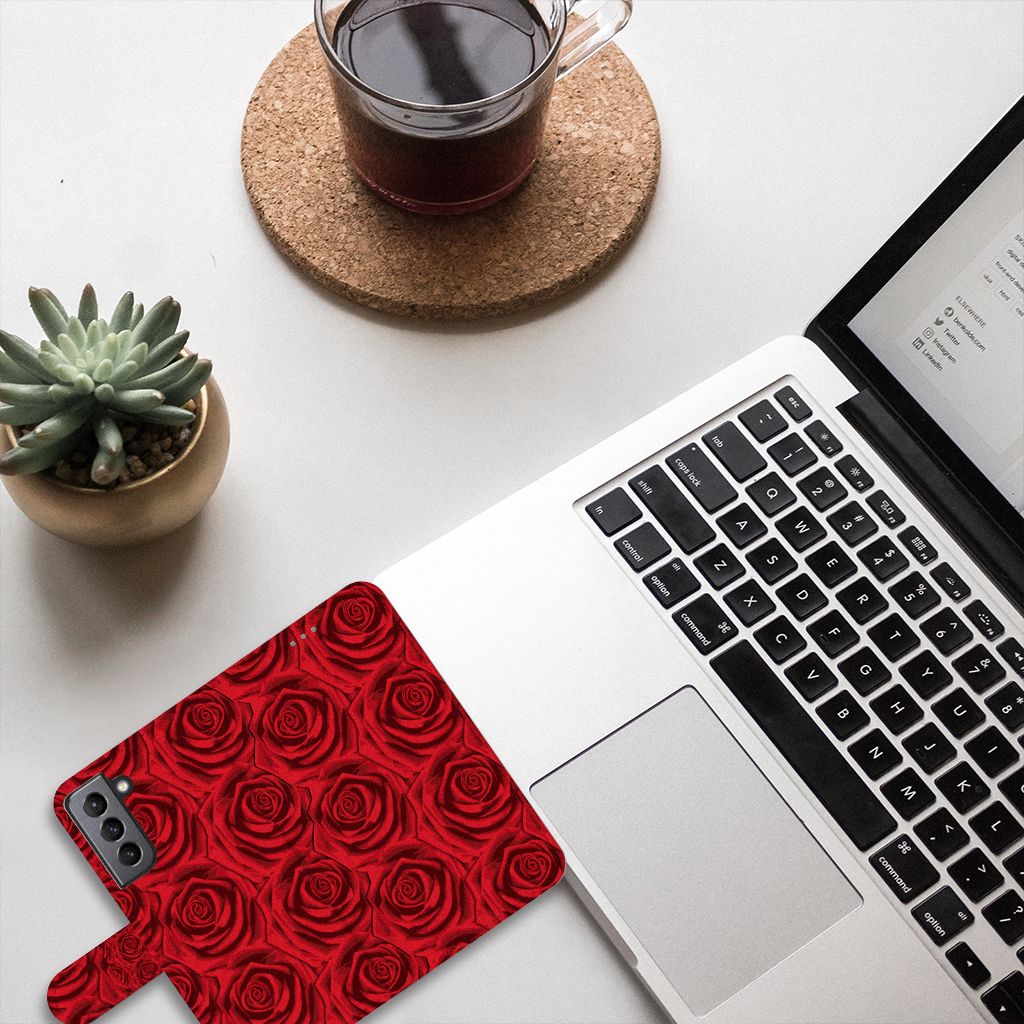 Ben je op zoek naar een uniek telefoonhoesje voor je Samsung Galaxy S21 FE? Dan ben je bij B2C Telecom aan het juiste adres! Speciaal voor jou hebben we dit prachtige Red Roses design in onze collectie hoesjes opgenomen. Het design wordt bedrukt op een Hoesje en heeft twee vakjes voor pasjes en een groter vakje voor briefgeld. Alle zijdes van het hoesje worden bedrukt, hoe uniek is dat? Het hoesje wordt afgesloten met een sluit lipje aan de voorkant. Wil je dit design hoesje nog iets extra's geven? Voeg dan gratis je naam of een quote toe! Is dit design hoesje toch niet helemaal wat je zocht? Ontwerp dan zelf een hoesje in ons ontwerpprogramma.