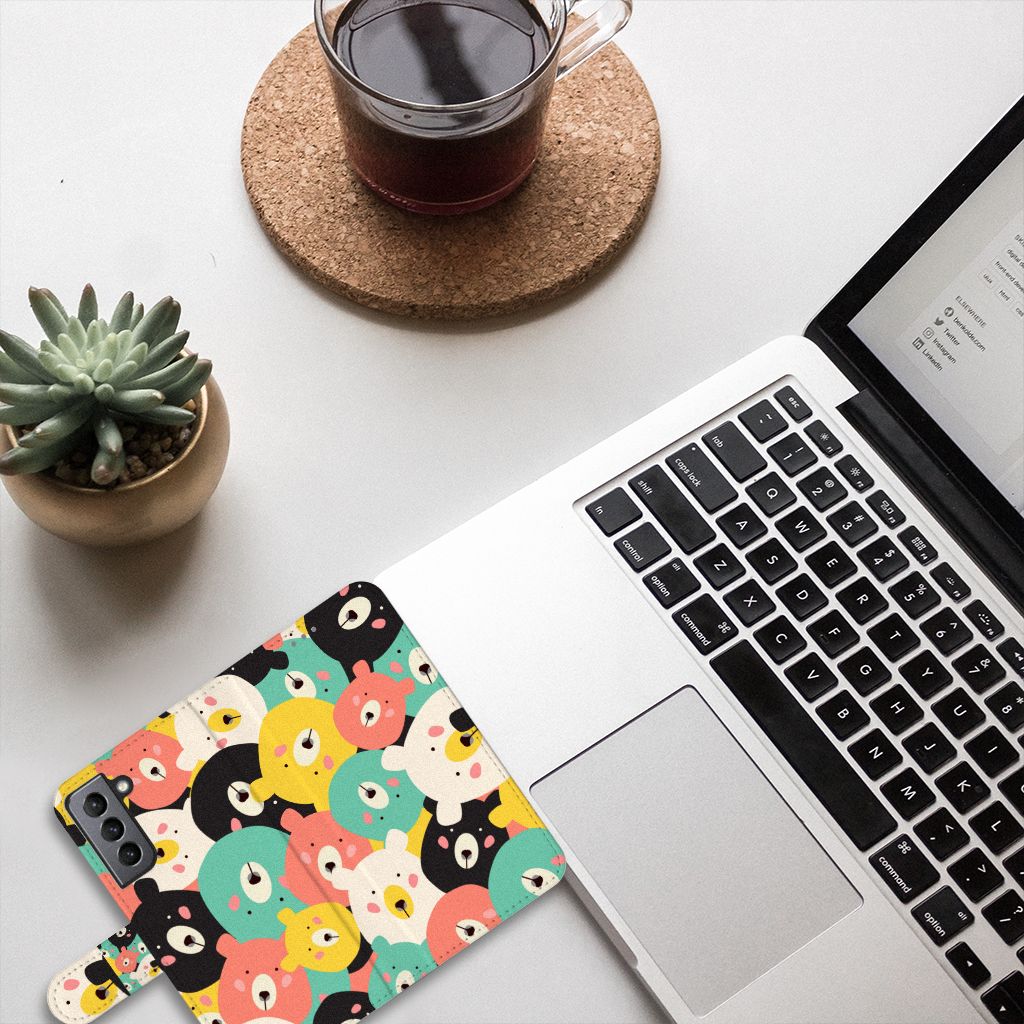 Op dit hoesje vind je een bereschattig ontwerp! Vergeef ons de woordgrap, maar hoe moeten we dit lieve ontwerp anders omschrijven? Op dit knuffelige ontwerp zie je leuke, getekende beertjes in vrolijke kleuren als geel, blauw en roze. Dankzij de contrasterende witte en zwarte beertjes vallen de felle kleurtjes nog meer op. Al met al is dit Leuk Hoesje voor de Samsung Galaxy S21 FE een perfect hoesje voor de knuffelberen onder ons. Een boekhoesje is perfect voor iedereen die niet graag allerlei losse dingen meesleept. Met dit hoesje heb je namelijk je belangrijkste bezittingen bij de hand. Binnenin zit namelijk een pasjeshouder voor twee pasjes. Daar bewaar je je belangrijkste (bank)passen in of je briefgeld. Super handig en heel erg mooi. En bovenal is je telefoon met dit bears-ontwerp goed beschermd tegen krassen en beschadigingen.