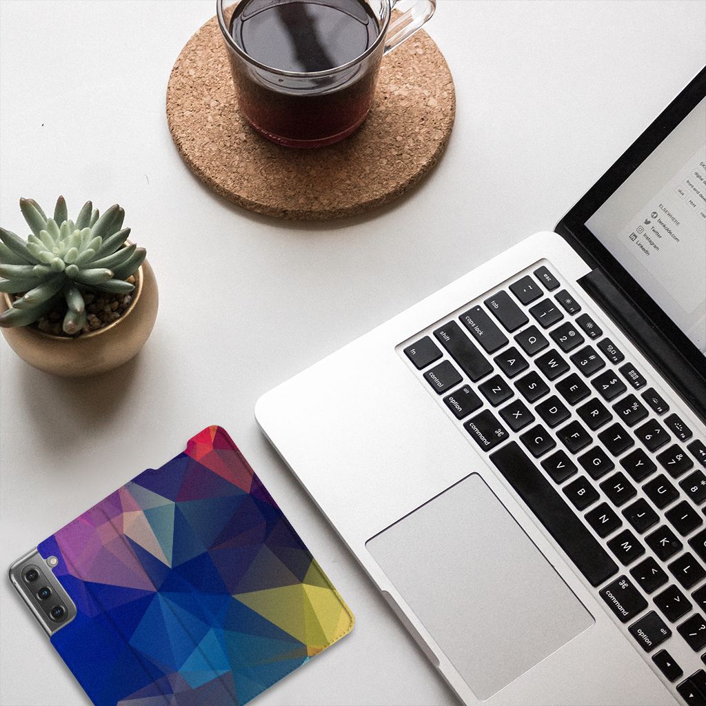 Ben je een liefhebber van abstracte hoesjes? Dan zit je met dit fraaie telefoonhoesje met Polygon Dark design voor je Samsung Galaxy S21 FE zeker goed. Het ontwerp springt in het oog door de naadloos op elkaar aansluitende veelhoeken – beter bekend als polygonen. Door hun asymmetrische karakter krijgt het Stand Case een bijzondere uitstraling en wordt je blik ernaartoe gezogen als door het beste abstracte schilderij. Het trendy uiterlijk en de warme kleuren zorgen ervoor dat het hoesje aansluit op vrijwel elke smaak en situatie. Gelukkig steel je niet alleen met het design de show, maar het beschikt ook over een 1 pashouder en een speciale standaard. Het hoesje wordt afgesloten met een magneet aan de binnenzijde. De houder aan de binnenzijde is van TPU. Alle zijden worden bedrukt.