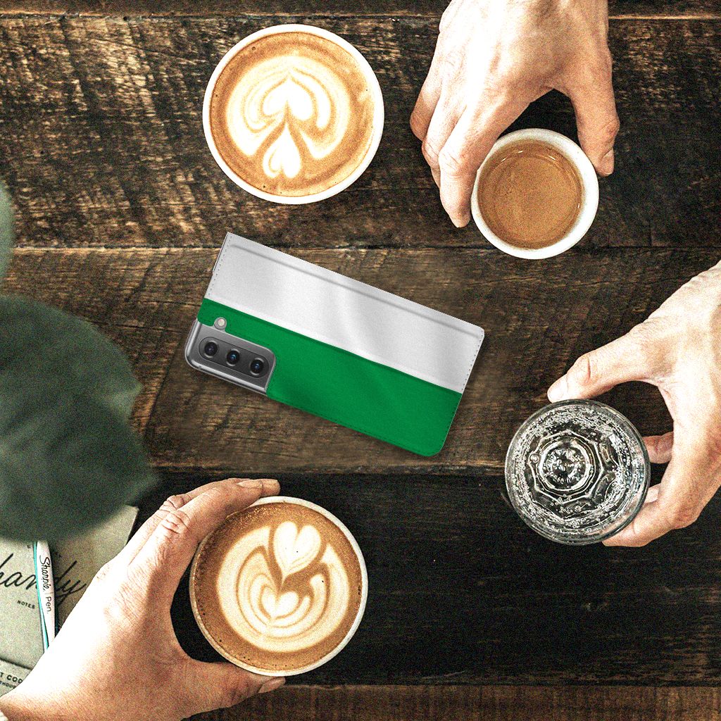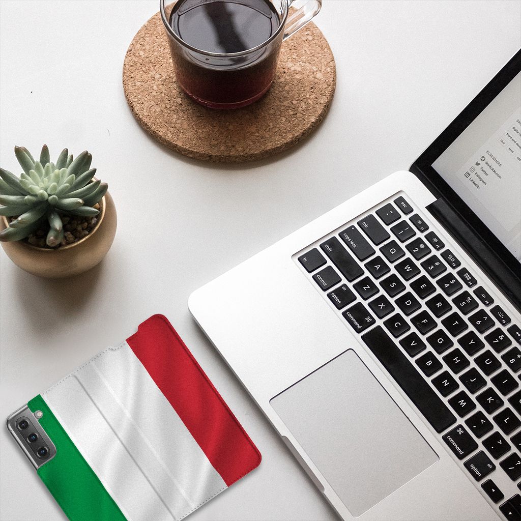 Vroeger werden vlaggen gebruikt om een boodschap over te brengen of een ridderorde aan te duiden. Tegenwoordig worden vlaggen gebruikt voor verschillende doeleinden. Een vlag kan worden gebruikt om te verwijzen naar een land, stad of beweging. Het staat symbool voor de nationaliteit van de mens. In onze collectie hebben wij alle Europese vlaggen opgenomen. De vlag wordt gedrukt op een Standcase voor de Samsung Galaxy S21 FE en heeft een vakje voor pasjes. Het fijne aan dit hoesje is dat je het horizontaal als standaard neer kunt zetten. Door de magneten aan de binnenkant wordt het hoesje afgesloten. Ook bieden wij de mogelijkheid om gratis je naam toe te voegen om het hoesje helemaal af te maken. Wil je meer vrijheid om het hoesje helemaal naar eigen wens te maken? Ga dan verder met ontwerpen in ons unieke ontwerpprogramma.