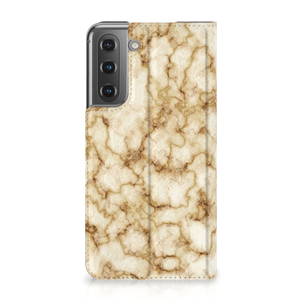 Deze Samsung Galaxy S21 FE Standcase met Marmer Goud is het waard om een blokje voor om te rijden. Dit is overigens niet nodig. Als je het hoesje met goud marmer nu bestelt heb je het zeer snel in huis. Je kunt er bij wijze van spreken thuis op gaan zitten wachten. Je hebt diverse soorten marmer. We hebben enkele fraaie kleuren op onze hoesjes gezet, zoals in dit geval het gouden marmer. Het gouden marmer wordt bedrukt op alle zijden van de stand case, die beschikt over een vakje voor pasjes of briefgeld en een magnetische sluiting aan de binnenzijde. Verder heeft de case met goud marmer een houder van TPU. De rijkheid aan kleuren en variaties in afwerking is een schitterende eigenschap van marmer. Dit stand hoesje met goud marmer heeft ook veel schitterende eigenschappen en is de ideale bescherming voor jouw smartphone.