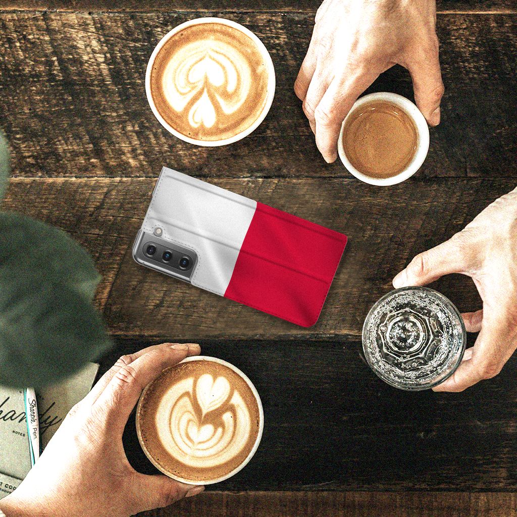 Vroeger werden vlaggen gebruikt om een boodschap over te brengen of een ridderorde aan te duiden. Tegenwoordig worden vlaggen gebruikt voor verschillende doeleinden. Een vlag kan worden gebruikt om te verwijzen naar een land, stad of beweging. Het staat symbool voor de nationaliteit van de mens. In onze collectie hebben wij alle Europese vlaggen opgenomen. De vlag wordt gedrukt op een Standcase voor de Samsung Galaxy S21 FE en heeft een vakje voor pasjes. Het fijne aan dit hoesje is dat je het horizontaal als standaard neer kunt zetten. Door de magneten aan de binnenkant wordt het hoesje afgesloten. Ook bieden wij de mogelijkheid om gratis je naam toe te voegen om het hoesje helemaal af te maken. Wil je meer vrijheid om het hoesje helemaal naar eigen wens te maken? Ga dan verder met ontwerpen in ons unieke ontwerpprogramma.