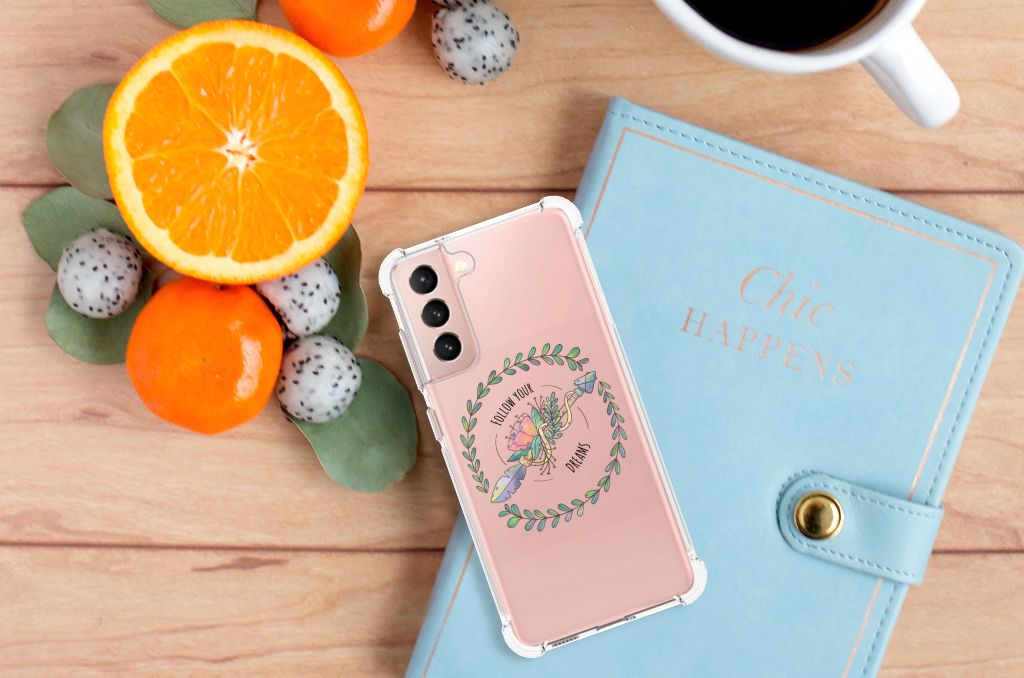 Ben je op zoek naar een uniek telefoonhoesje voor je Samsung Galaxy S21 FE? Dan ben je bij B2C Telecom aan het juiste adres! Speciaal voor jou hebben we dit prachtige Boho Dreams design in onze collectie hoesjes opgenomen. Het design wordt bedrukt op een Stevig Bumper Hoesje en is gemaakt van flexibel rubber. Het hoesje is perfect voor de actieve smartphonegebruiker door de opstaande randen/hoeken. Denk aan mensen die veel sporten, reizen of wandelen en net iets meer zekerheid willen als het op hun geliefde telefoon aankomt. Het design wordt alleen aan de bovenkant van het hoesje bedrukt en de randen blijven transparant. Aan de zijkanten zijn uitsparingen gemaakt waardoor je met gemak alle knoppen en poorten kunt bedienen. Wij adviseren om dit hoesje in combinatie met een screenprotector te gebruiken voor een langere levensduur van je telefoon. Wil je dit hoesje nog iets extra's geven? Voeg dan gratis je naam of een quote toe! Is dit design hoesje toch niet helemaal wat je zocht? Ontwerp dan zelf een hoesje in ons ontwerpprogramma.