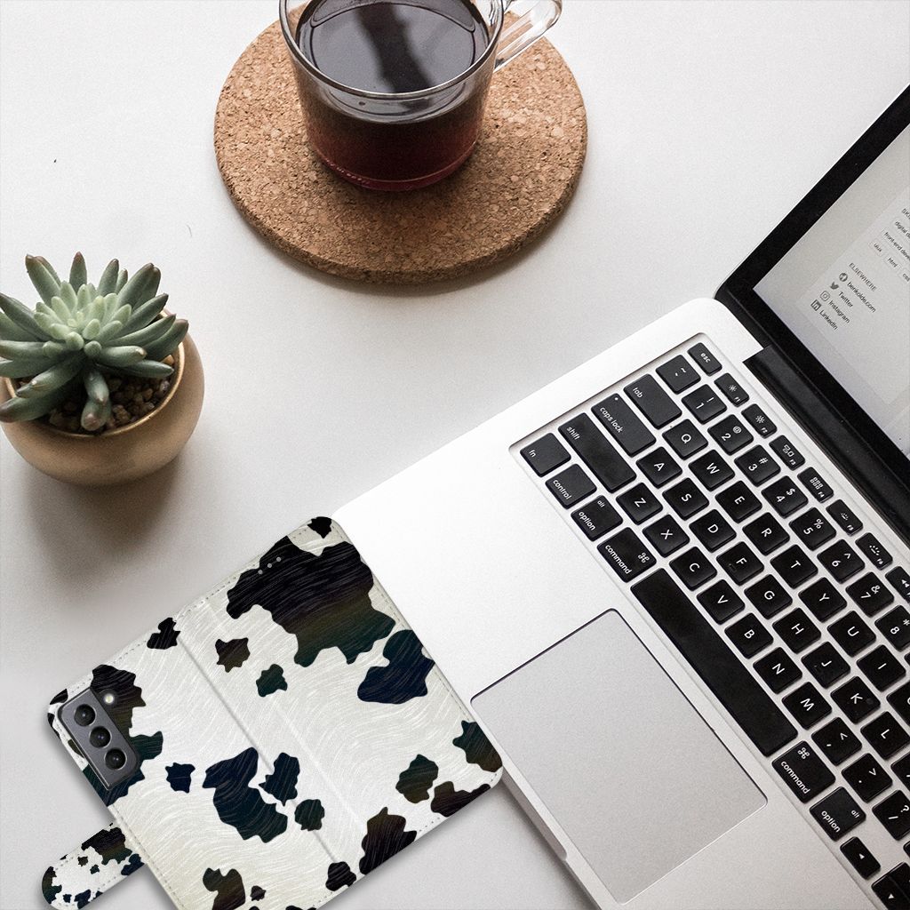 Samsung Galaxy S21 FE hoesje met magnetisch lipje Koeienvlekken