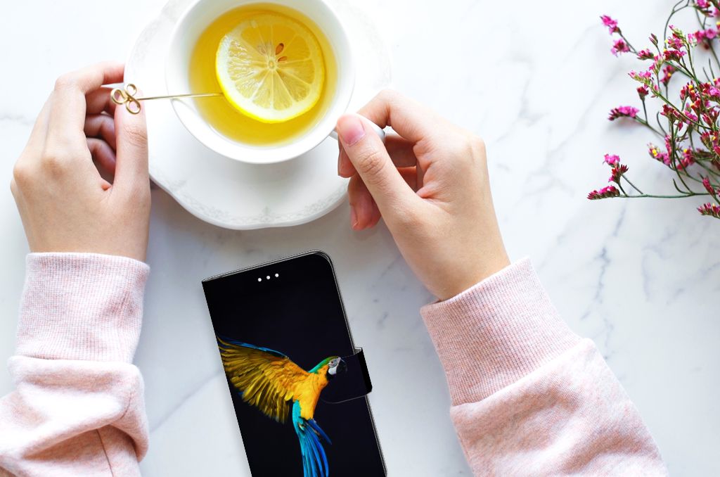 Samsung Galaxy S21 FE Telefoonhoesje met ruimte voor 3 pasjes Papegaai