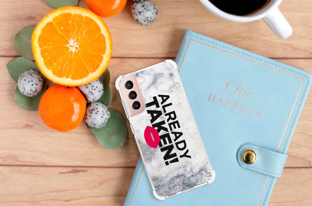 Ben je op zoek naar een uniek telefoonhoesje voor je Samsung Galaxy S21 FE? Dan ben je bij B2C Telecom aan het juiste adres! Speciaal voor jou hebben we dit prachtige Already Taken White design in onze collectie hoesjes opgenomen. Het design wordt bedrukt op een Telefoonhoesje met tekst en is gemaakt van flexibel rubber. Het hoesje is perfect voor de actieve smartphonegebruiker door de opstaande randen/hoeken. Denk aan mensen die veel sporten, reizen of wandelen en net iets meer zekerheid willen als het op hun geliefde telefoon aankomt. Het design wordt alleen aan de bovenkant van het hoesje bedrukt en de randen blijven transparant. Aan de zijkanten zijn uitsparingen gemaakt waardoor je met gemak alle knoppen en poorten kunt bedienen. Wij adviseren om dit hoesje in combinatie met een screenprotector te gebruiken voor een langere levensduur van je telefoon. Wil je dit hoesje nog iets extra's geven? Voeg dan gratis je naam of een quote toe! Is dit design hoesje toch niet helemaal wat je zocht? Ontwerp dan zelf een hoesje in ons ontwerpprogramma.