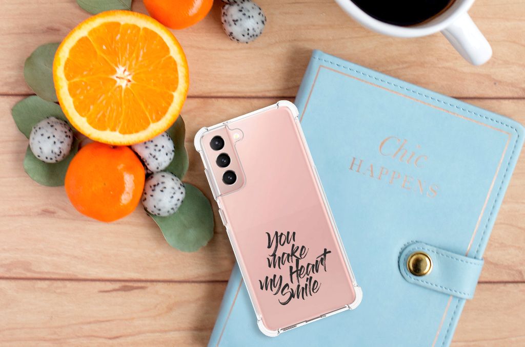 Ben je op zoek naar een uniek telefoonhoesje voor je Samsung Galaxy S21 FE? Dan ben je bij B2C Telecom aan het juiste adres! Speciaal voor jou hebben we dit prachtige Heart Smile design in onze collectie hoesjes opgenomen. Het design wordt bedrukt op een Telefoonhoesje met tekst en is gemaakt van flexibel rubber. Het hoesje is perfect voor de actieve smartphonegebruiker door de opstaande randen/hoeken. Denk aan mensen die veel sporten, reizen of wandelen en net iets meer zekerheid willen als het op hun geliefde telefoon aankomt. Het design wordt alleen aan de bovenkant van het hoesje bedrukt en de randen blijven transparant. Aan de zijkanten zijn uitsparingen gemaakt waardoor je met gemak alle knoppen en poorten kunt bedienen. Wij adviseren om dit hoesje in combinatie met een screenprotector te gebruiken voor een langere levensduur van je telefoon. Wil je dit hoesje nog iets extra's geven? Voeg dan gratis je naam of een quote toe! Is dit design hoesje toch niet helemaal wat je zocht? Ontwerp dan zelf een hoesje in ons ontwerpprogramma.