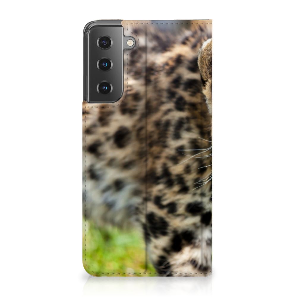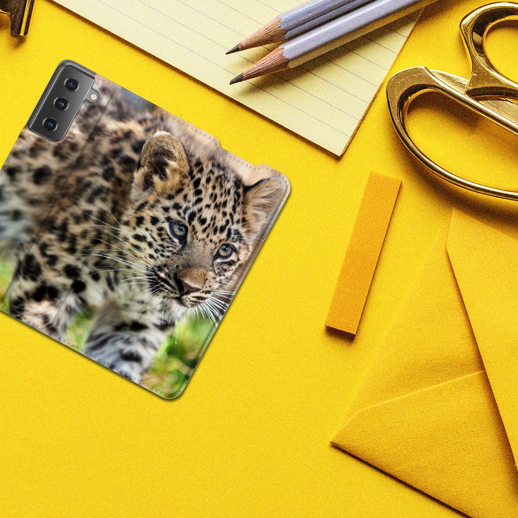 De luipaard is een grote, gespierde katachtige met korte, krachtige poten en een lange staart. Aangezien het op dit hoesje een baby luipaard betreft, zijn deze eigenschappen nog niet volledig tot wasdom gekomen. De kop van de luipaard is breed en een beetje rond van vorm met kleine, ronde oren. De snuit is middelgroot, met krachtige kaken en lange snorharen. De vacht van een luipaard is bedekt met veel zwarte vlekken. Kies je voor dit design hoesje, dan zal er van vlekken op jouw smartphone nooit en te nimmer sprake zijn. Het stoere en tegelijkertijd aandoenlijke design staat op een stand case. Een Samsung Galaxy S21 Hoesje maken beschermt jouw telefoon aan alle kanten en beschikt over een 1 opbergvakje en een speciale standaard. Het hoesje wordt afgesloten met een magneet aan de binnenzijde. De houder aan de binnenzijde is van TPU.