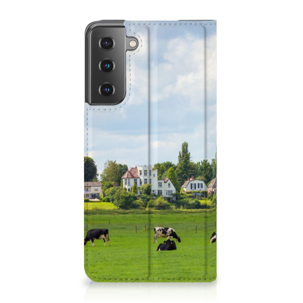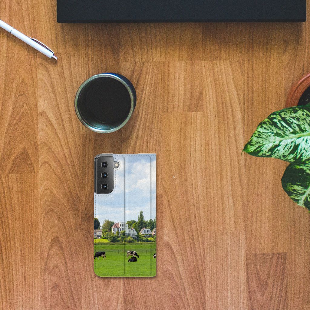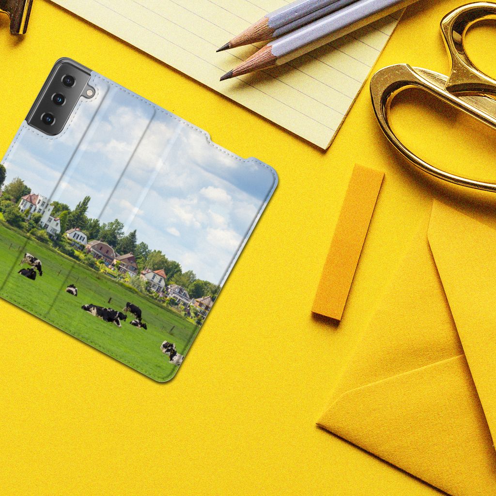 Een koe moet goed verzorgd worden. Door ze buiten te laten lopen en grazen, hebben ze minder kans om ziek te worden. De koe is een kuddedier en graast het liefst met soortgenoten. Dit levert ook mooie plaatjes op, zoals je kunt zien op dit design hoesje met Koeien. Dit smartphone hoesje met koeien ziet er super strak uit en is voorzien van verschillende uitsparingen. Een Samsung Galaxy S21 Hoesje maken met magneet en grazende koeien beschermt jouw smartphone overal. Alle kanten zijn bedrukt. Koeien hebben graasperioden van ongeveer een uur. Deze worden afgewisseld worden door rust- en herkauwperioden. Ze herkauwen het liefst liggend, behalve wanneer het regent. Zo goed als grazen voelt voor koeien, zo duurzaam zal jouw smartphone worden met dit design hoesje. Het TPU aan de binnenkant zeer flexibel. Het PU-leer aan de buitenkant oogt zeer flexibel. De stand case heeft 1 opbergvakje en een speciale standaard.