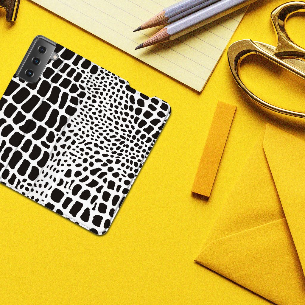 Deze stand case met zwarte en witte Slangenprint kunnen wij zeer exclusief noemen. Zeker als je er nog een bijzondere tekst van jezelf aan toevoegt, zoals je eigen naam in een sierletter. Jouw stand case krijgt dan een persoonlijke uitstraling, net nog een beetje specialer dan dit hoesje met zwarte en witte slangenprint. Wat niets afdoet van de exclusiviteit van deze stand case met zwarte en witte slangenprint. Ben jij toe aan een stoer en opvallend Samsung Galaxy S21 Hoesje maken? Pak dan dit design met print van slangenhuid als basis. Het stand hoesje met zwarte en witte slangenprint is van PU-leer (buitenzijde) en TPU (binnenzijde) en beschikt over een houder en een standaard. Verder is dit stand hoesje met slangenprint voorzien van een magnetische sluiting aan de binnenkant. Jij bent ervan verzekerd dat jouw smartphone tegen een stootje kan met dit stand hoesje met zwarte en witte slangenprint.