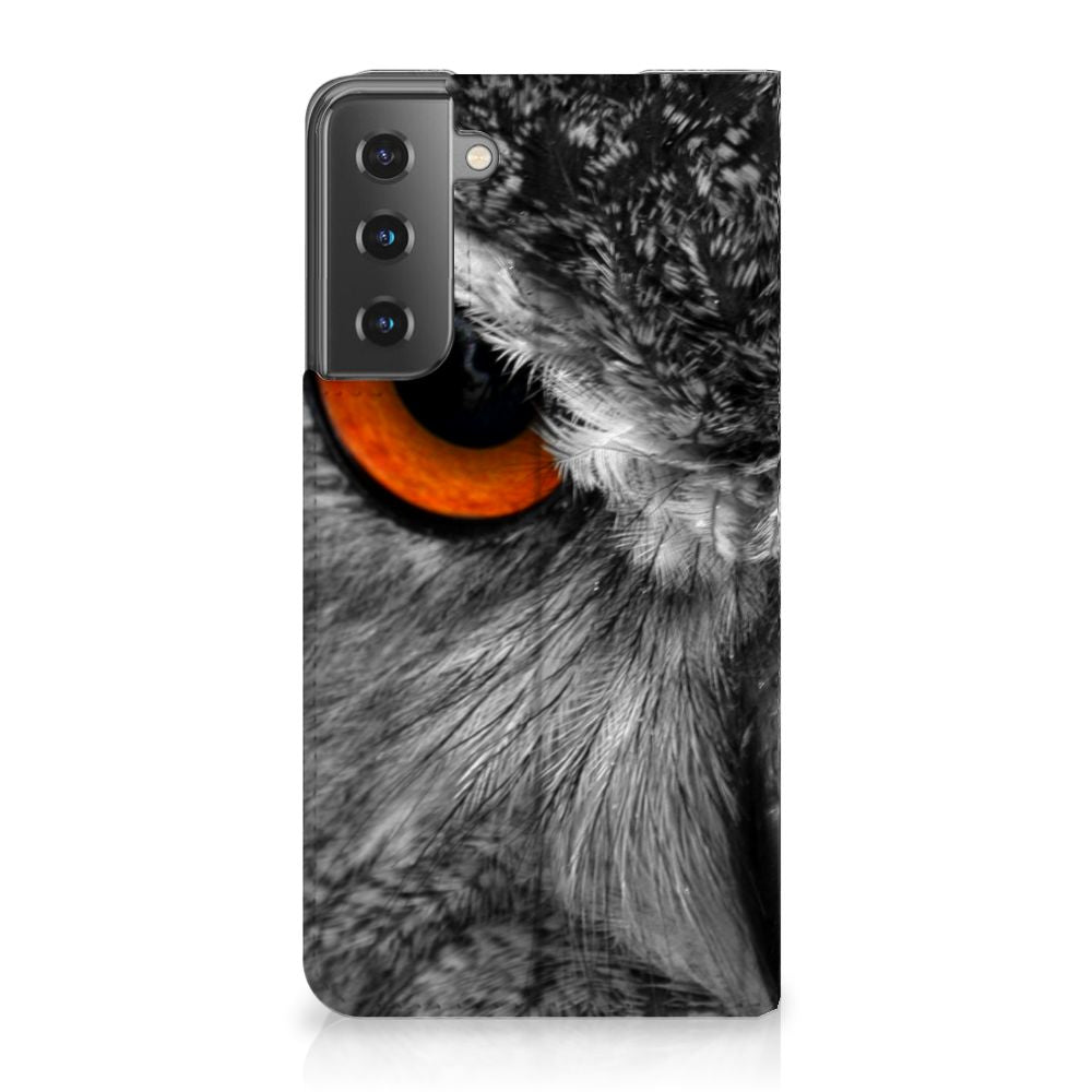 Deze Samsung Galaxy S21 Hoesje maken met uil is iets voor de nachtbrakers onder ons. De uil is bij uitstek een vogel die in de nachtelijke uren actief is. Ben jij ook iemand die dan tot leven komt, dan is deze stand case met uil echt iets voor jou. Als je tot in de late uurtjes op stap bent, komt het goed uit dat jouw smartphone aan alle kanten goed is beschermd met deze stand case met uil. De case met uil heeft een magnetische sluiting aan de binnenkant, waardoor de hoes niet openklapt als die uit je handen valt. Jouw creditcard of pinpas heb je als het goed is veilig opgeborgen in het vakje aan de binnenzijde. De houder aan de binnenzijde van de case met print van uil is van het flexibele TPU. De wat stoerdere types hebben veel baat bij deze stand case met uilen in felle kleuren.
