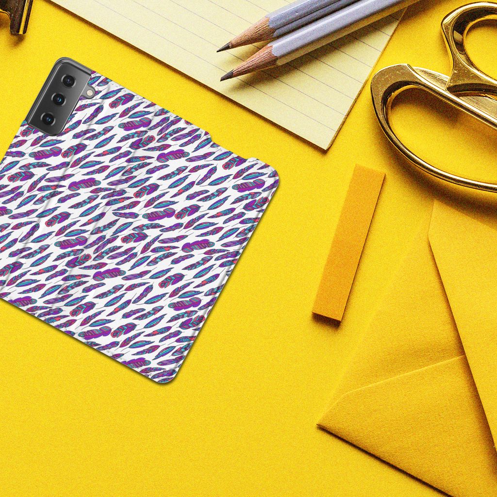 Ben je op zoek naar een uniek telefoonhoesje voor je Samsung Galaxy S21? Dan ben je bij B2C Telecom aan het juiste adres! Speciaal voor jou hebben we dit prachtige Feathers Color design in onze collectie hoesjes opgenomen. Het design wordt bedrukt op een Hoesje met Magneet en heeft een vakje aan de binnenkant voor een pasje. Het fijne aan dit hoesje is dat je het als standaard neer kunt zetten. Hierdoor geniet je nog meer als je een filmpje aan het kijken bent op je telefoon. Het hoesje wordt afgesloten door magneten aan de binnenkant. Wil je dit design hoesje nog iets extra's geven? Voeg dan gratis je naam of een quote toe! Is dit design hoesje toch niet helemaal wat je zocht? Ontwerp dan zelf een hoesje in ons ontwerpprogramma.