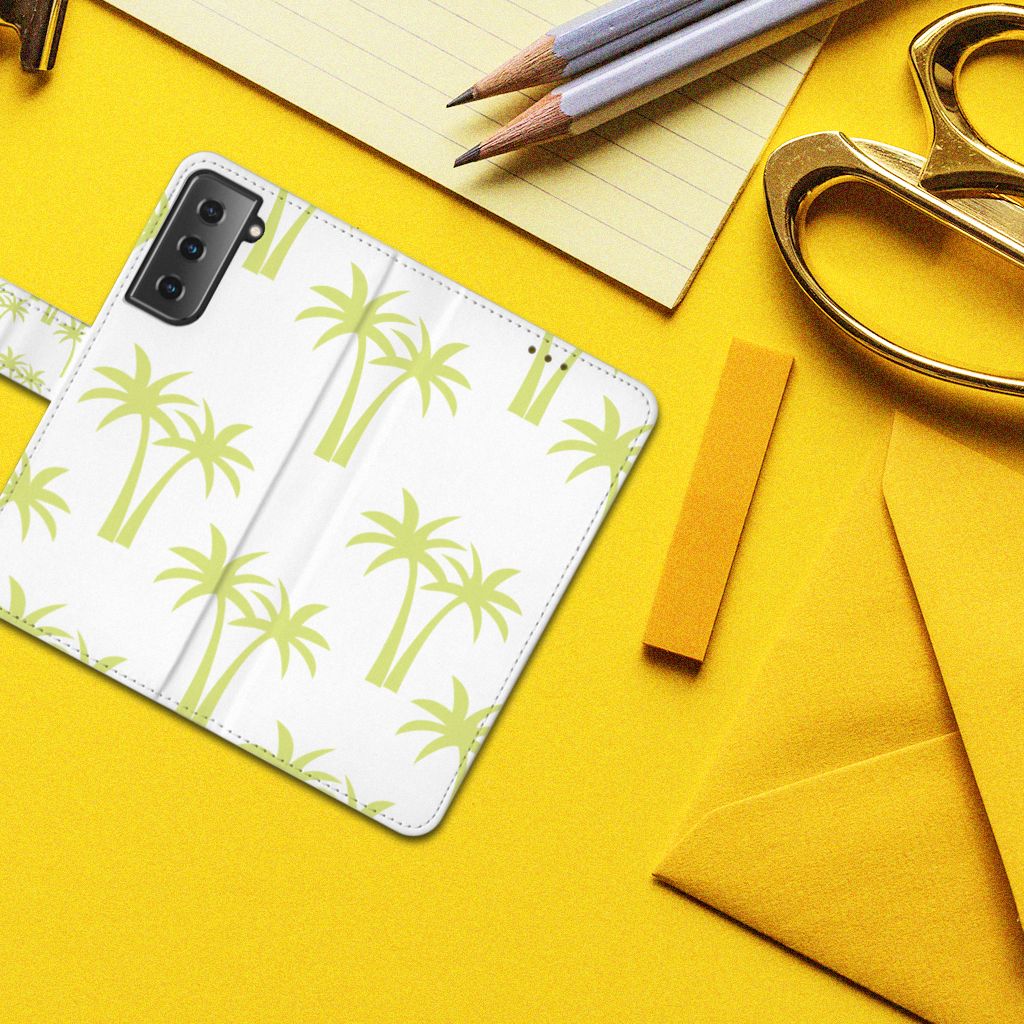 Je krijgt direct een vakantiegevoel als je kiest voor een Samsung Galaxy S21 Hoesje met opdruk van lichtgroene Palmtrees. Sommige mensen hebben ook een palmboom in hun tuin staan, wij kunnen er meerdere op een boekhoesje zetten. Jouw smartphone is op en top beschermd met een boekhoesje met lichtgroene palmbomen tegen een witgrijze achtergrond. Het boekhoesje met lichtgroene palmbomen tegen een witgrijze achtergrond heeft meerdere vakjes aan de binnenzijde en een magnetische sluitclip aan de buitenkant. Dit boekhoesje met lichtgroene palmbomen beschermt jouw telefoon aan alle zijden. De houder van TPU aan de binnenzijde is zeer flexibel.