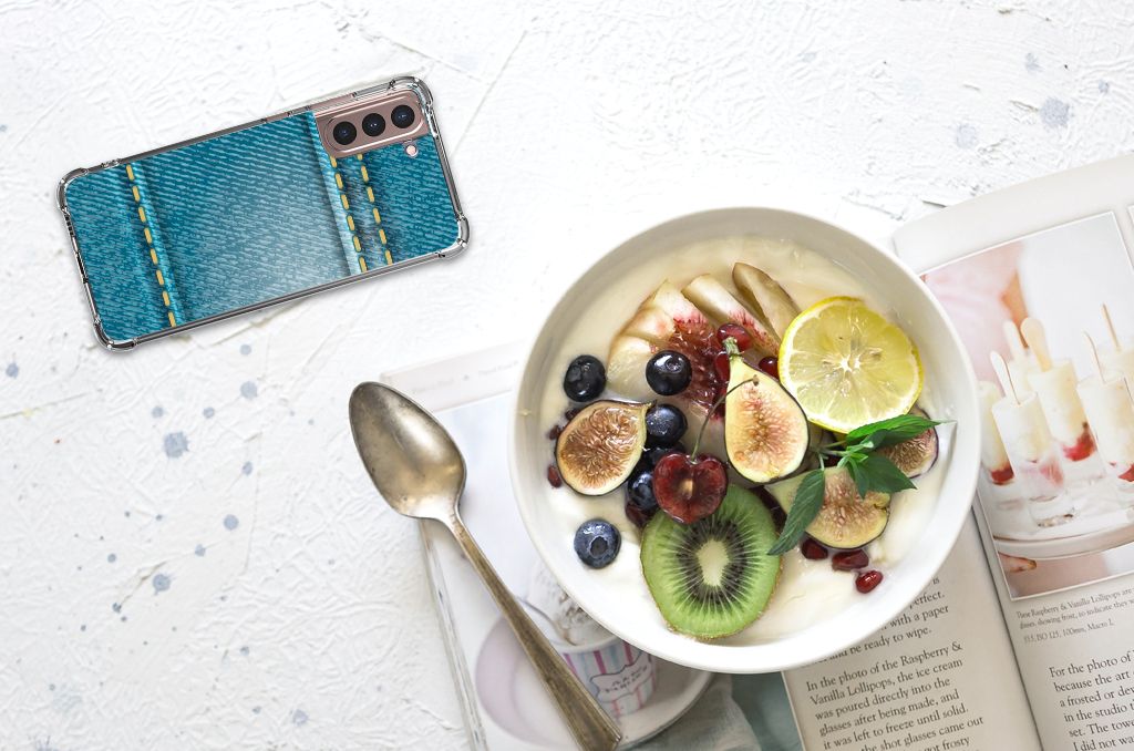Ben je op zoek naar een uniek telefoonhoesje voor je Samsung Galaxy S21 Plus? Dan ben je bij B2C Telecom aan het juiste adres! Speciaal voor jou hebben we dit prachtige Jeans design in onze collectie hoesjes opgenomen. Het design wordt bedrukt op een Anti Shock Bumper Case en is gemaakt van flexibel rubber. Het hoesje is perfect voor de actieve smartphonegebruiker door de opstaande randen/hoeken. Denk aan mensen die veel sporten, reizen of wandelen en net iets meer zekerheid willen als het op hun geliefde telefoon aankomt. Het design wordt alleen aan de bovenkant van het hoesje bedrukt en de randen blijven transparant. Aan de zijkanten zijn uitsparingen gemaakt waardoor je met gemak alle knoppen en poorten kunt bedienen. Wij adviseren om dit hoesje in combinatie met een screenprotector te gebruiken voor een langere levensduur van je telefoon. Wil je dit hoesje nog iets extra's geven? Voeg dan gratis je naam of een quote toe! Is dit design hoesje toch niet helemaal wat je zocht? Ontwerp dan zelf een hoesje in ons ontwerpprogramma.
