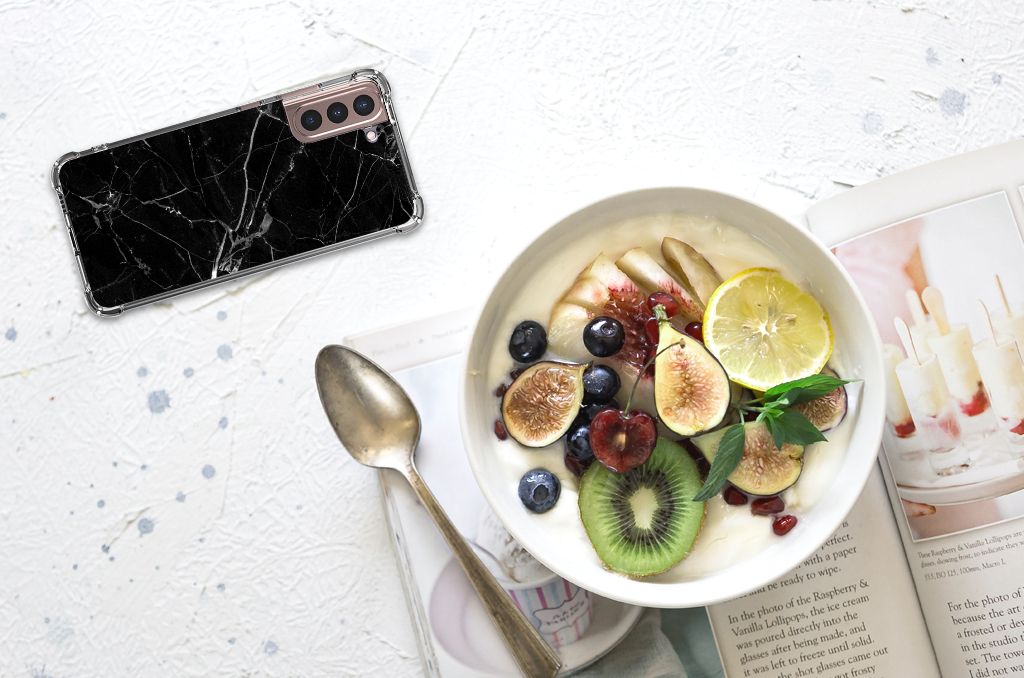 Samsung Galaxy S21 Plus Standcase Marmer Zwart - Origineel Cadeau Vader