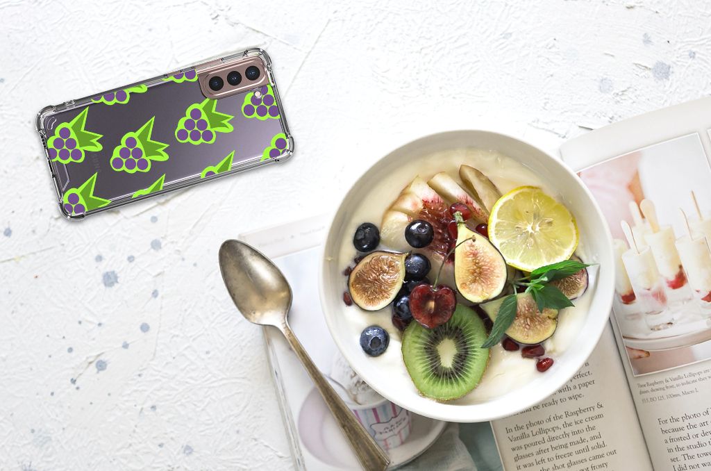 Ben je op zoek naar een uniek telefoonhoesje voor je Samsung Galaxy S21 Plus? Dan ben je bij B2C Telecom aan het juiste adres! Speciaal voor jou hebben we dit prachtige Druiven design in onze collectie hoesjes opgenomen. Het design wordt bedrukt op een Beschermhoes en is gemaakt van flexibel rubber. Het hoesje is perfect voor de actieve smartphonegebruiker door de opstaande randen/hoeken. Denk aan mensen die veel sporten, reizen of wandelen en net iets meer zekerheid willen als het op hun geliefde telefoon aankomt. Het design wordt alleen aan de bovenkant van het hoesje bedrukt en de randen blijven transparant. Aan de zijkanten zijn uitsparingen gemaakt waardoor je met gemak alle knoppen en poorten kunt bedienen. Wij adviseren om dit hoesje in combinatie met een screenprotector te gebruiken voor een langere levensduur van je telefoon. Wil je dit hoesje nog iets extra's geven? Voeg dan gratis je naam of een quote toe! Is dit design hoesje toch niet helemaal wat je zocht? Ontwerp dan zelf een hoesje in ons ontwerpprogramma