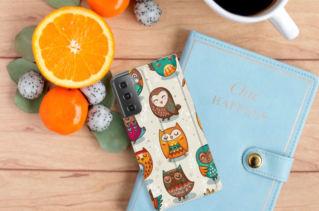 Deze Samsung Galaxy S21 Plus Hoesje maken met Vrolijke Uilen is echt iets voor de nachtbrakers onder ons. De uil is zoals je weet bij uitstek een vogel die in de nachtelijke uren actief is. Ben jij ook iemand die s ’nachts tot leven komt, dan is deze stand case met uilen in felle kleuren echt iets voor jou. Als je tot in de late uurtjes op stap bent, komt het goed uit dat jouw smartphone aan alle kanten goed is beschermd met deze stand case met uilen. De case met uilen heeft een magnetische sluiting aan de binnenkant, waardoor de hoes niet openklapt als die uit je handen valt. Jouw creditcard of pinpas heb je als het goed is veilig opgeborgen in het vakje aan de binnenzijde. De houder aan de binnenzijde van de case met print van uilen is van het flexibele TPU. De wat ruigere types hebben veel baat bij deze stand case met uilen in felle kleuren.