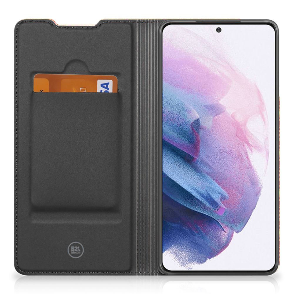 Batikken is een super oude kunstvorm. Met deze methode wordt een geweven stof met verf gedecoreerd. Er zijn stoffen gevonden in het Midden-Oosten en Azië van meer dan tweeduizend jaar oud. Wie had kunnen bedenken dat we zo’n mooie batik-print duizenden jaren later zelfs op telefoonhoesjes zouden terugvinden? Dit Hoesje met Magneet in voor je Samsung Galaxy S21 Plus heeft een mooie oranje kleur en een prachtig symmetrisch patroon. Vanwege de felle kleurtjes is dit hoesje onwijs vrolijk. Het hoesje heeft binnenin één vakje voor een pasje en een magnetische sluiting aan de binnenkant. Verder heeft de batik orange-hoes een houder van TPU. Het leuke van een standcase is dat je hem eenvoudig neer kunt zetten. Zo heb je je handen vrij als je bijvoorbeeld een video wilt kijken op je smartphone.
