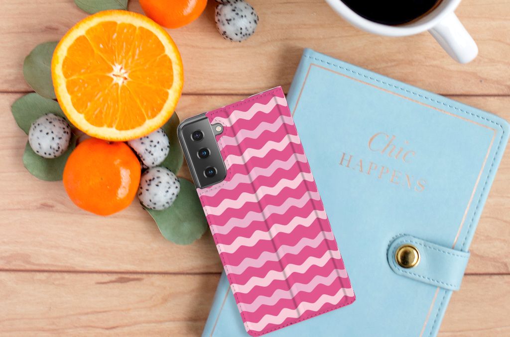 Dit design hoesje met roze golven is speciaal op maat gemaakt voor jouw telefoon. We hebben verschillende kleurstellingen gebruikt in het design, zodat de case er spannend en leuk uitziet. Dit roze hoesje met verschillende soorten golven ziet er opwindend uit. Het Samsung Galaxy S21 Plus Hoesje met Magneet wordt in ons eigen magazijn bedrukt, vandaar dat we de kosten zeer laag kunnen houden. Wij kunnen het duurzame hoesje met Waves Pink zeer snel leveren. Heb jij altijd al een design hoesje met verschillende soorten roze willen hebben? De stand case met roze golven beschermt jouw telefoon aan alle kanten en beschikt over een 1 opbergvakje en een speciale standaard. Het roze hoesje wordt afgesloten met een magneet aan de binnenzijde. De houder aan de binnenzijde van de case in verschillende soorten roze is van het flexibele TPU. Alle zijden van de roze stand case worden bedrukt.