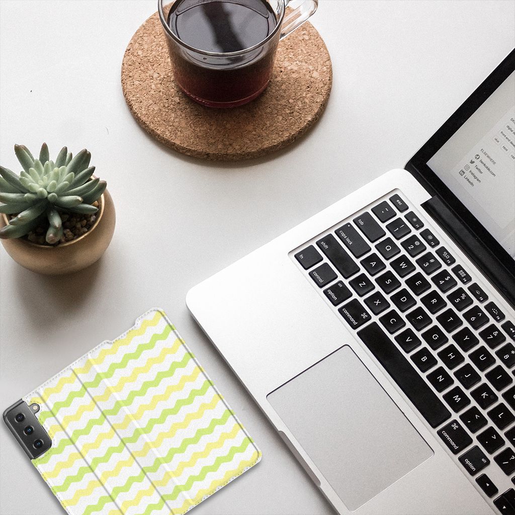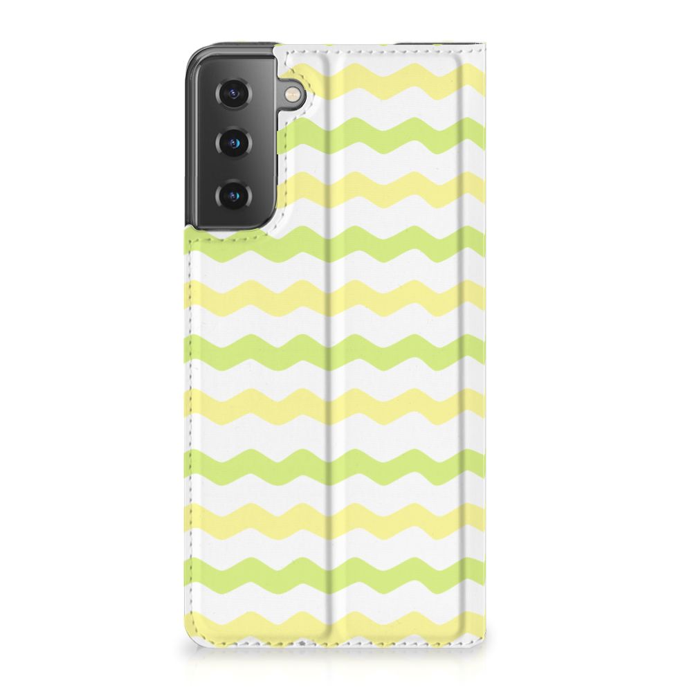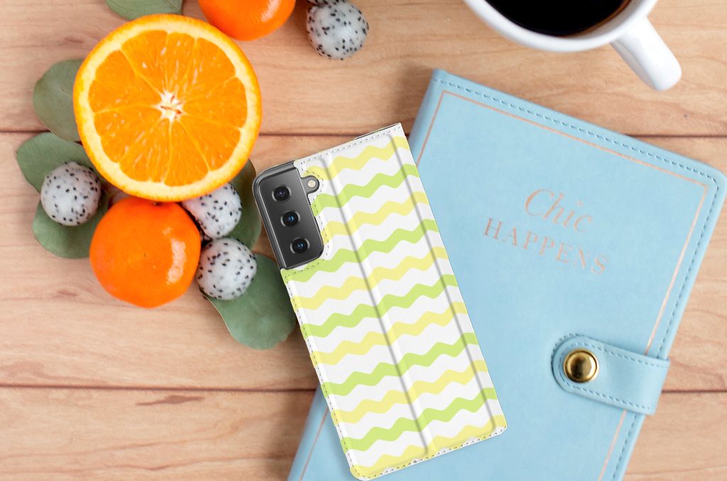 Dit Waves Yellow design hoesje met licht groene en gele golven is speciaal ontworpen voor jouw telefoon. We hebben een vleugje lichtgeel toegevoegd, zodat de case er een beetje spannender en leuker uitziet. Dit licht groene hoesje met licht groene golven ziet er oogstrelend uit. Het wordt in ons eigen magazijn bedrukt, in zeer goede kwaliteit inkt. Wij kunnen dus een zeer duurzaam hoesje met licht groene golven garanderen. Dit hele mooie Samsung Galaxy S21 Plus Hoesje met Magneet heeft vele extra’s. Is dit licht groene design hoesje je op het lijf geschreven? Grijp dan nu je kans. Deze stand case met licht groene golven beschermt jouw telefoon aan alle kanten en beschikt over een 1 opbergvakje en een speciale standaard. Het licht groene hoesje wordt afgesloten met een magneet aan de binnenzijde. De houder aan de binnenzijde is van het flexibele TPU. Alle zijden van de stand case worden bedrukt.