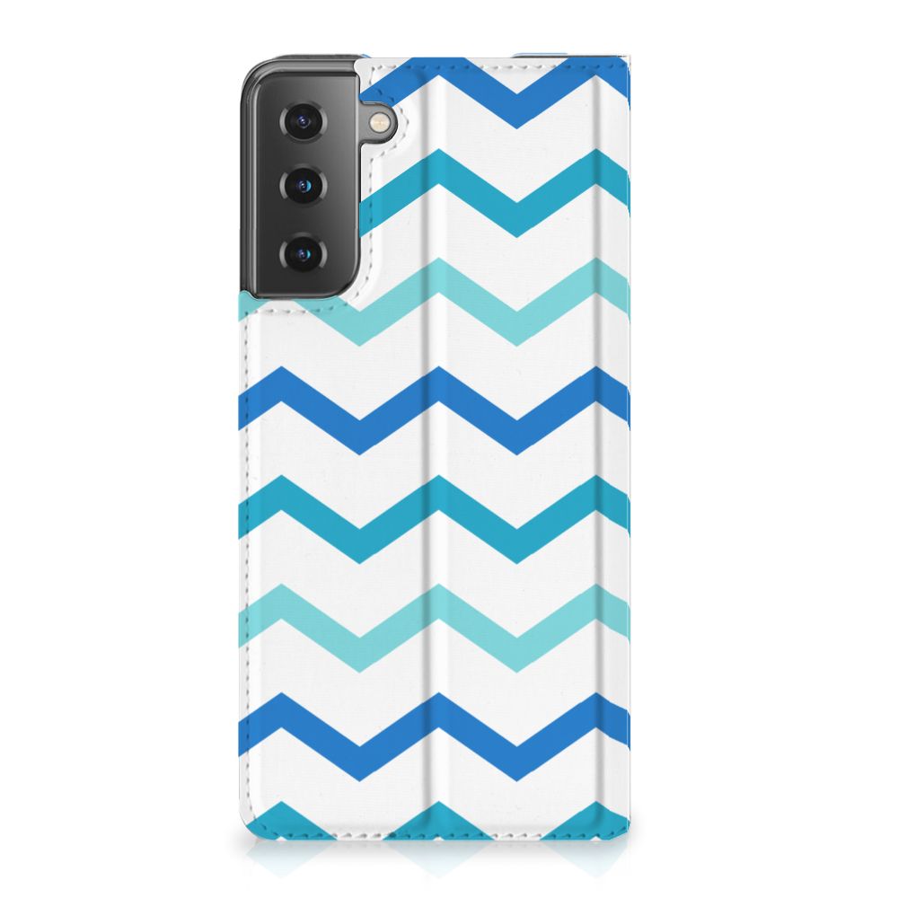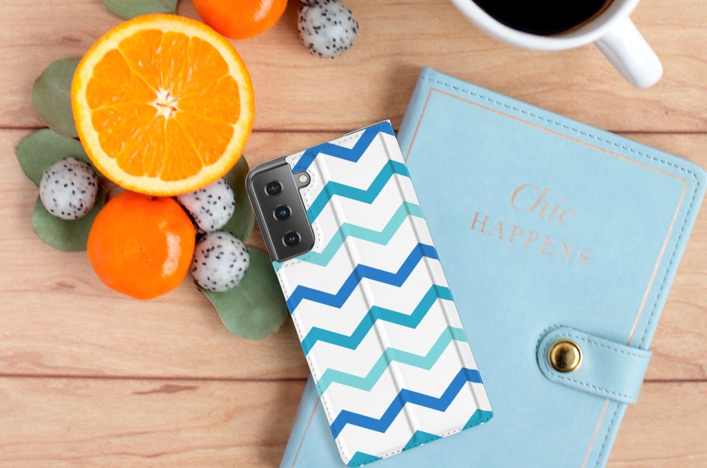 Dit zigzag blauwe design hoesje is speciaal ontworpen voor jou. We hebben bewust verschillende stijlen blauw gebruikt, zodat er voldoende sprake is van variatie. Dit blauwwitte Hoesje met Magneet ziet er super strak uit. Dat kan ook niet anders, als je weet dat onze zeer talentvolle designer er hoogstpersoonlijk voor verantwoordelijk is. Hij schudt wekelijks nieuwe designs uit zijn mouw en dit zigzag blauwe hoesje is een van zijn fraaiste creaties. Een heel dik design hoesje, al zeggen we het zelf. Valt dit blauwwitte design hoesje goed bij jou? Bestel het dan vandaag nog en je hebt het morgen in huis. Het design staat op een stand case. Deze case beschermt jouw Samsung Galaxy S21 Plus aan alle kanten en beschikt over een 1 opbergvakje en een speciale standaard. Het hoesje wordt afgesloten met een magneet aan de binnenzijde. De houder aan de binnenzijde is van TPU. Alle zijden van de stand case worden bedrukt.
