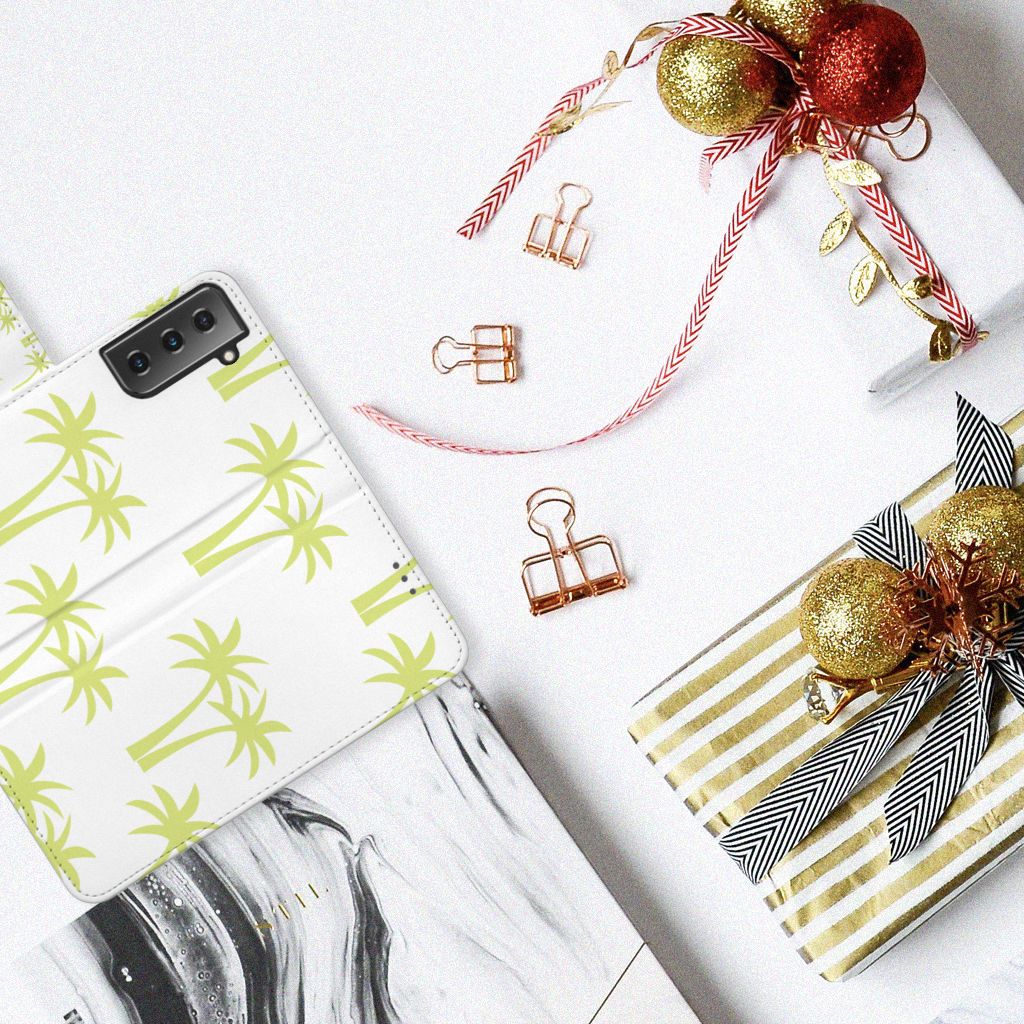 Je krijgt direct een vakantiegevoel als je kiest voor een Samsung Galaxy S21 Plus Hoesje met opdruk van lichtgroene Palmtrees. Sommige mensen hebben ook een palmboom in hun tuin staan, wij kunnen er meerdere op een boekhoesje zetten. Jouw smartphone is op en top beschermd met een boekhoesje met lichtgroene palmbomen tegen een witgrijze achtergrond. Het boekhoesje met lichtgroene palmbomen tegen een witgrijze achtergrond heeft meerdere vakjes aan de binnenzijde en een magnetische sluitclip aan de buitenkant. Dit boekhoesje met lichtgroene palmbomen beschermt jouw telefoon aan alle zijden. De houder van TPU aan de binnenzijde is zeer flexibel.