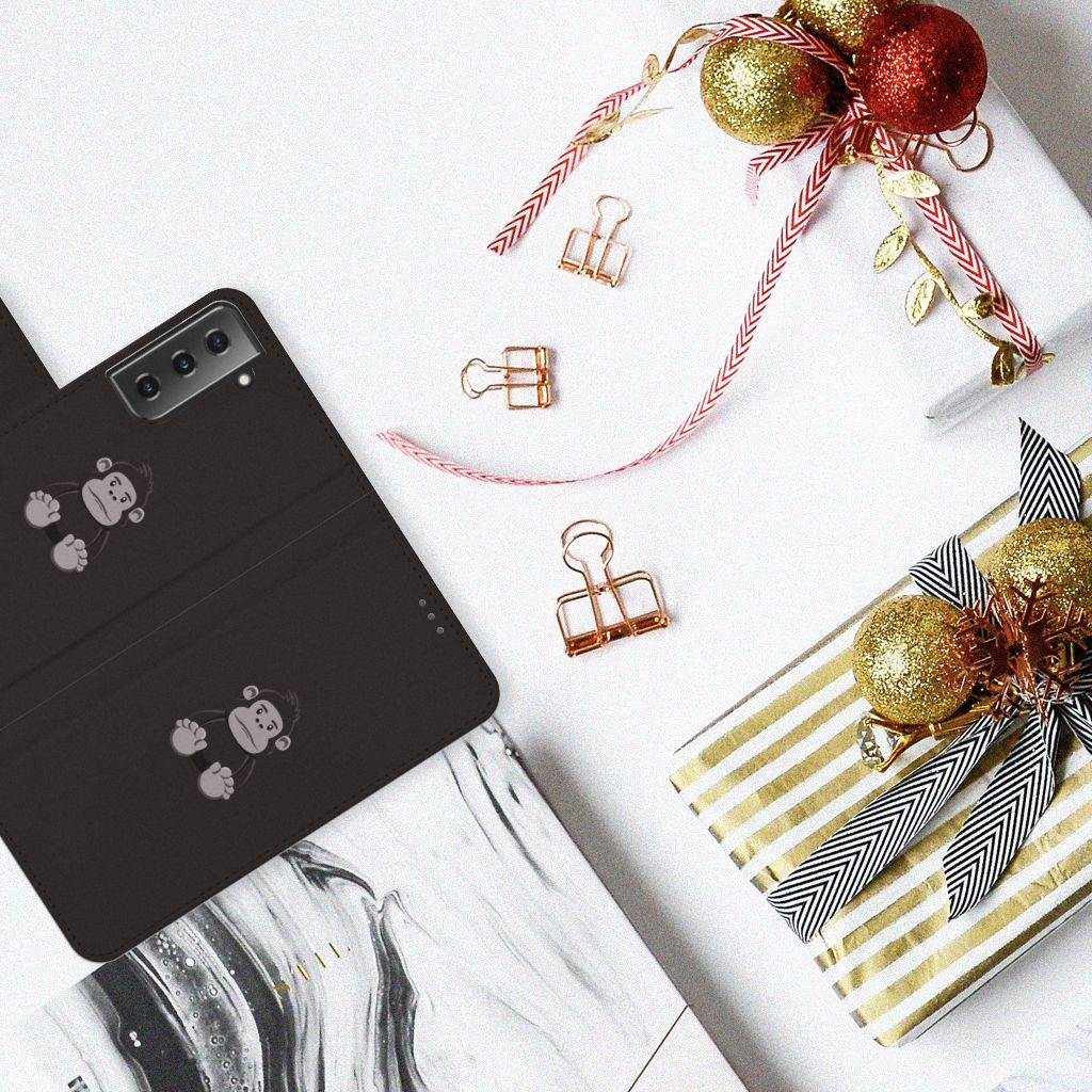 Gorilla's zijn grote en imposante dieren maar op deze flip case zie je een knuffelversie van de gorilla die er veel liever uitziet. Als jij een schattig hoesje wilt waar je altijd blij van wordt dan is dit misschien het Samsung Galaxy S21 Plus Leuk Hoesje wat je zoekt. Ook jouw telefoon zal blij worden van dit boekhoesje aangezien hij goed beschermd is in dit Samsung Galaxy S21 Plus Leuk Hoesje. De houder van TPU houdt de telefoon goed op zijn plek en de buitenkant van kunstleer beschermd hem goed in een val. Bovendien wordt de buitenkant goed op zijn plek gehouden door het magnetische lipje dat dient als sluiting. Het maakt dus niet uit hoe jouw telefoon valt, hij is altijd veilig in deze flip case.