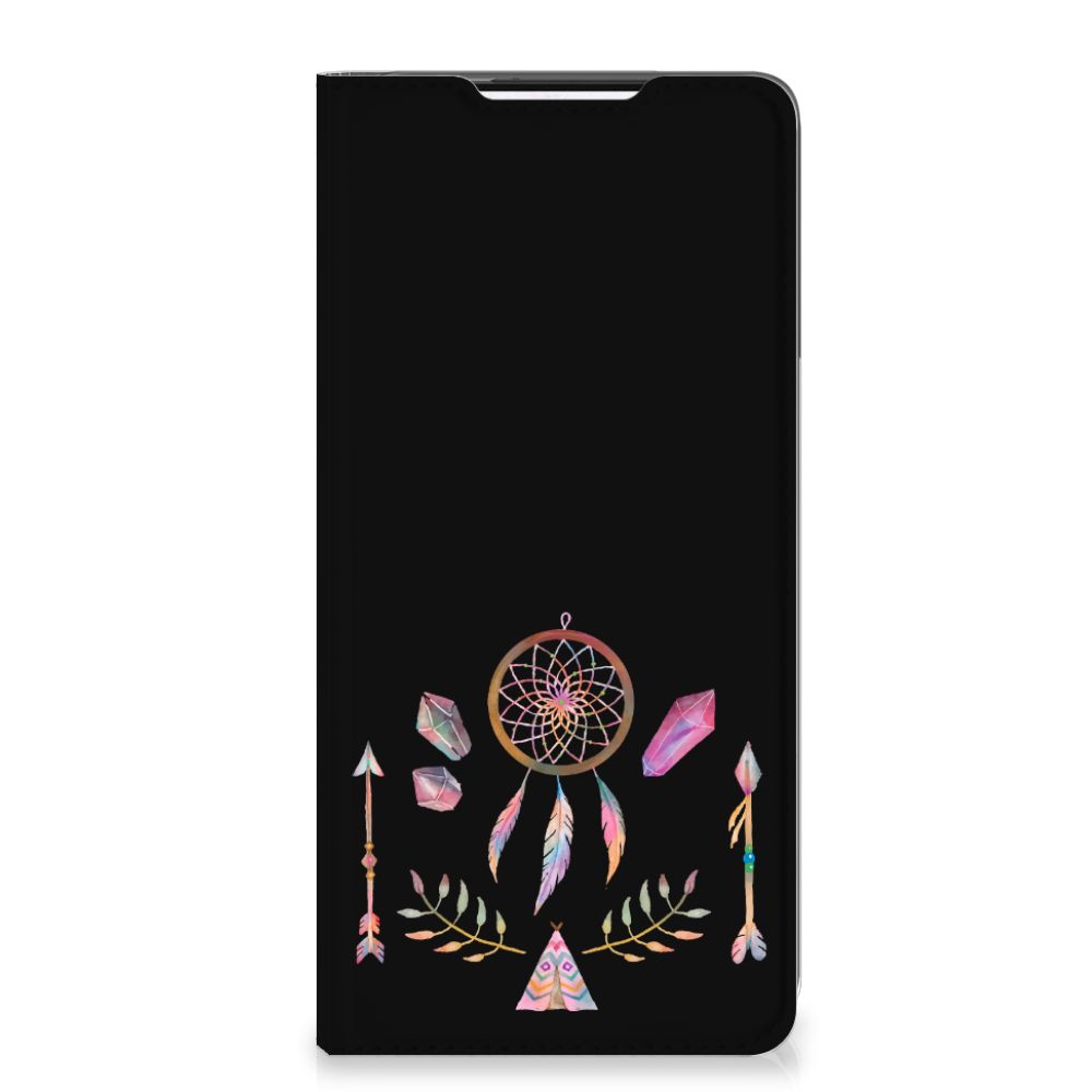 Een dromenvanger werd lang geleden al door een indianenvolk in Noord-Amerika gebruikt om nare dromen te weren. Nu nog hangen mensen over de hele wereld dromenvangers boven hun bed. Maar ook op een telefoonhoesje staat zo’n boho dreamcatcher heel mooi. Dit mooie design dat bestaat uit een tipi, pijlen en dromenvanger heeft veel verschillende prachtige kleuren. Maar omdat het ontwerp minimalistisch en klein is, is het design toch subtiel te noemen. Dit ontwerp staat op een Magnet Case voor je Samsung Galaxy S21 Plus. Dit populaire smartphonehoesje heeft één vakje voor een pasje of briefgeld en is aan alle zijden bedrukt. Met de standcase zet je je telefoon gemakkelijk neer, zodat je je handen vrij hebt als je bijvoorbeeld een video wilt kijken. De binnenkant van de standcase is van grijs PU-leer. Dat is fijn, omdat je daardoor niet snel vlekken ziet op je hoesje.