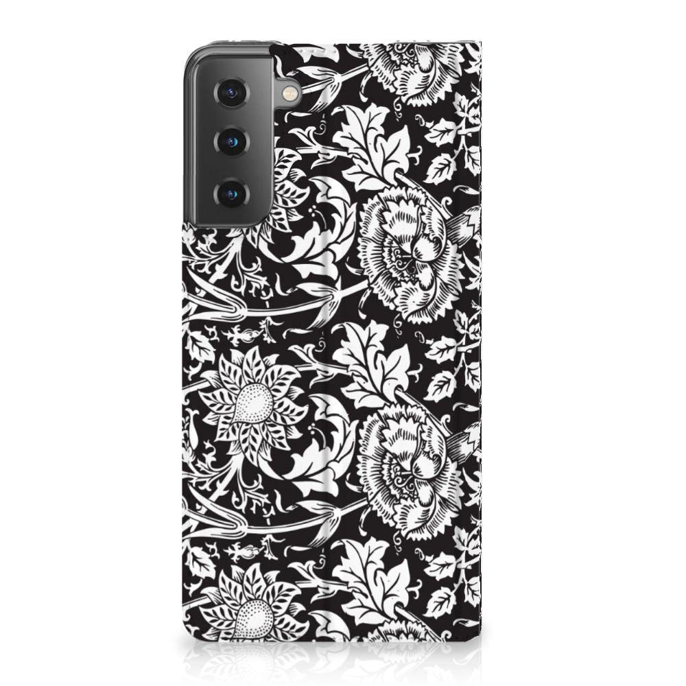 Bloemen raken nooit uit de mode! Een mooie bloemenprint op je telefoonhoesje dus ook niet. Dit ontwerp met mooie, enigszins abstracte bloemen is perfect voor de liefhebber van bloemen die geen felgekleurd hoesje wil. Vanwege de zwarte achtergrond en de witte bloemen heb je toch een opvallend en uniek design in handen. Dit black flowers-ontwerp staat op een Smart Cover voor je Samsung Galaxy S21 Plus. Dit populaire smartphonehoesje met het beton-design heeft één vakje voor een pasje of briefgeld en is aan alle zijden bedrukt. Met de standcase zet je je telefoon gemakkelijk neer, zodat je je handen vrij hebt als je bijvoorbeeld een video wilt kijken. De binnenkant van de standcase is van grijs PU-leer. Dat is fijn, omdat je daardoor niet snel vlekken ziet op je hoesje.
