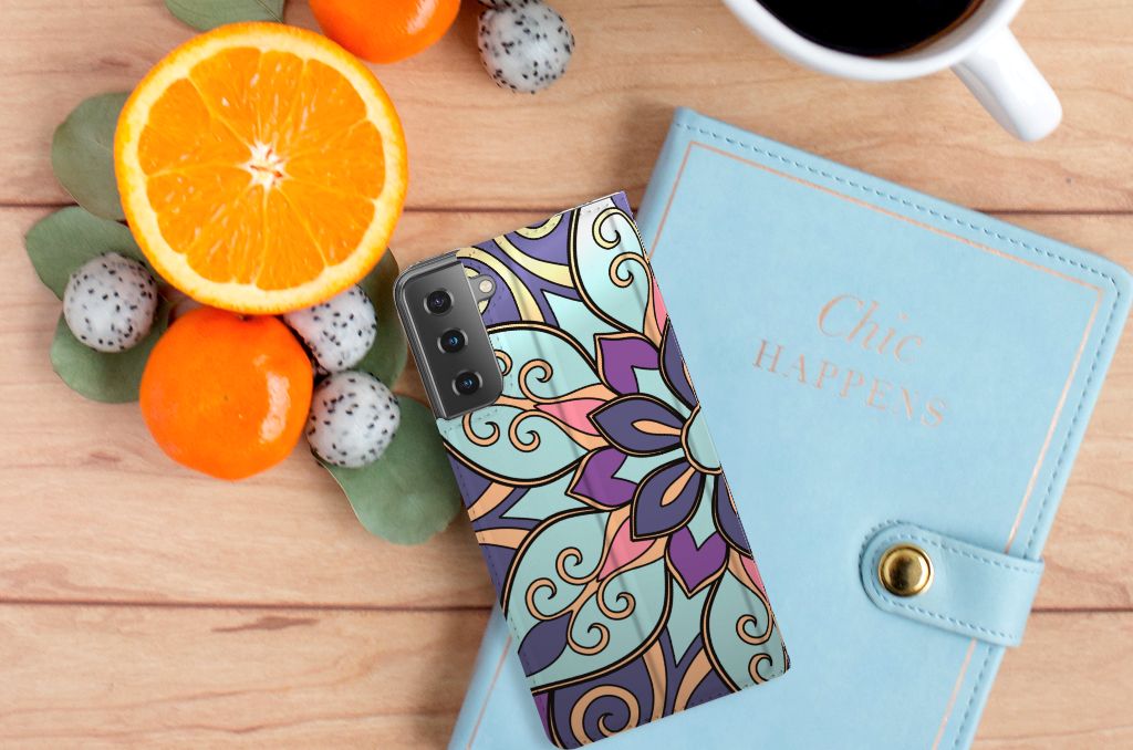 Liefhebbers van bloemen en barok opgelet. Wij presenteren speciaal voor jou dit design hoesje met paarse bloemen in de stijl barok. Hou je van deze zeer geslaagde combinatie, dan kies je voor een schitterende Samsung Galaxy S21 Plus Smart Cover met Purple Flower. De hele mooie print met paarse bloemen zetten we op een stand hoesje op het moment dat jij je bestelling plaatst. Hierdoor krijgt jouw telefoon een print van zeer hoge kwaliteit. Ook omdat we het bedrukken van deze case, op alle zijden, geheel zelf doen. Jouw favoriete bloemen zie je in barok stijl terug op dit mooie design hoesje. De stand case heeft een speciale standaard en wordt aan de binnenzijde met een magneet afgesloten. Je bankpas of creditcard kun je kwijt in het van de vakjes aan de binnenkant van het telefoonhoesje met paarse bloemen in barok stijl.