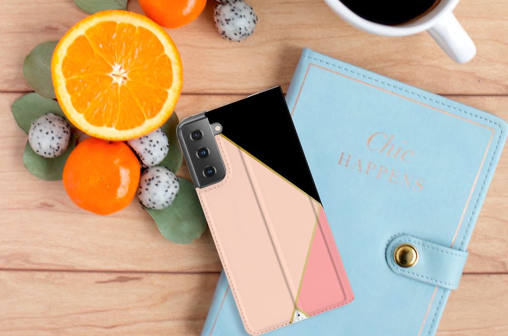 Samsung Galaxy S21 Plus Print Stand Case Zwart Roze Vormen
