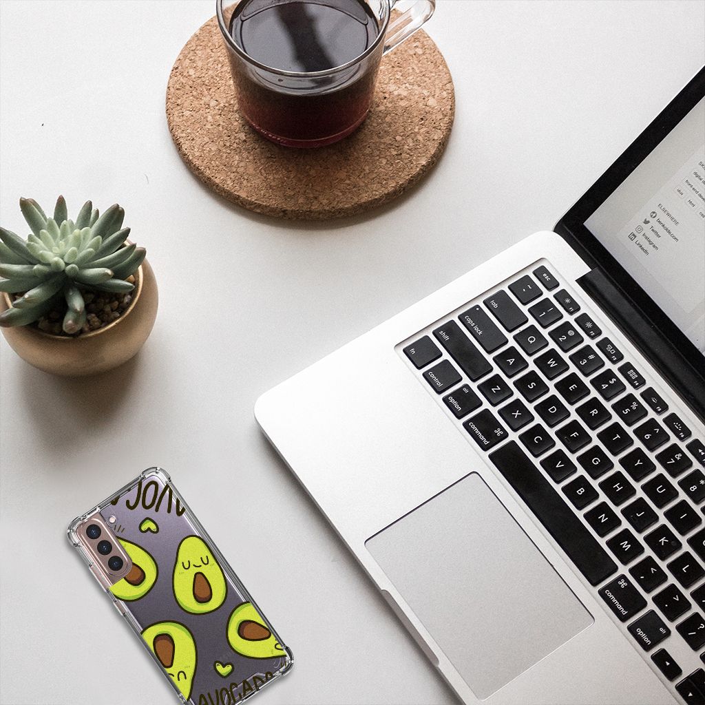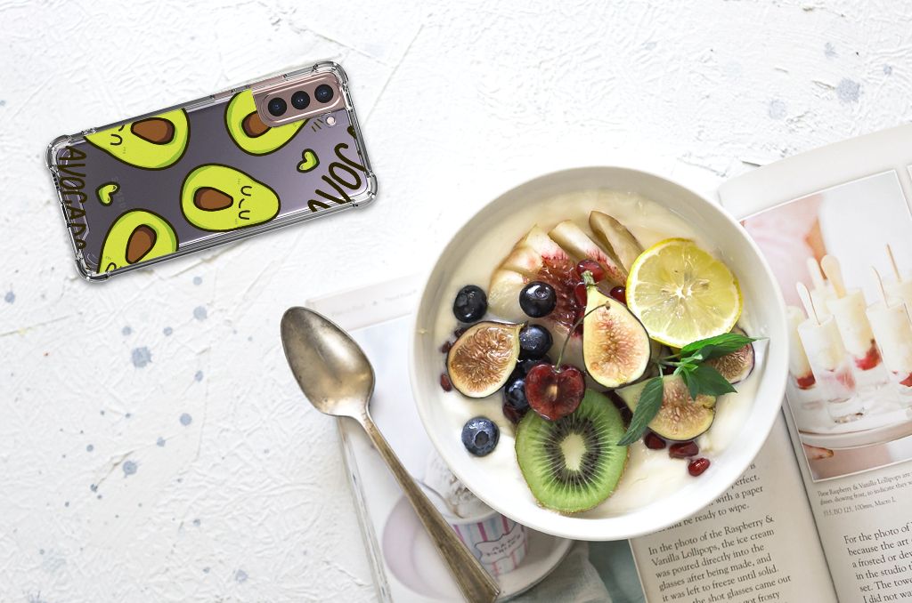 Ben je op zoek naar een uniek telefoonhoesje voor je Samsung Galaxy S21 Plus? Dan ben je bij B2C Telecom aan het juiste adres! Speciaal voor jou hebben we dit prachtige Avocado Singing design in onze collectie hoesjes opgenomen. Het design wordt bedrukt op een Stevig Bumper Hoesje en is gemaakt van flexibel rubber. Het hoesje is perfect voor de actieve smartphonegebruiker door de opstaande randen/hoeken. Denk aan mensen die veel sporten, reizen of wandelen en net iets meer zekerheid willen als het op hun geliefde telefoon aankomt. Het design wordt alleen aan de bovenkant van het hoesje bedrukt en de randen blijven transparant. Aan de zijkanten zijn uitsparingen gemaakt waardoor je met gemak alle knoppen en poorten kunt bedienen. Wij adviseren om dit hoesje in combinatie met een screenprotector te gebruiken voor een langere levensduur van je telefoon. Wil je dit hoesje nog iets extra's geven? Voeg dan gratis je naam of een quote toe! Is dit design hoesje toch niet helemaal wat je zocht? Ontwerp dan zelf een hoesje in ons ontwerpprogramma.