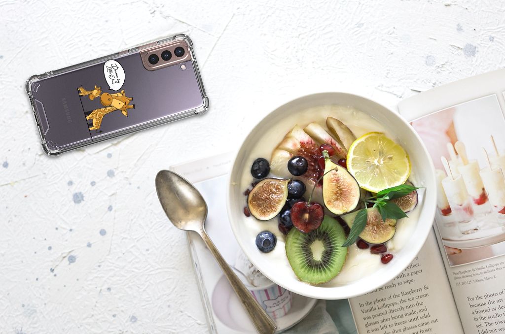 Ben je op zoek naar een uniek telefoonhoesje voor je Samsung Galaxy S21 Plus? Dan ben je bij B2C Telecom aan het juiste adres! Speciaal voor jou hebben we dit prachtige Giraffe design in onze collectie hoesjes opgenomen. Het design wordt bedrukt op een Stevig Bumper Hoesje en is gemaakt van flexibel rubber. Het hoesje is perfect voor de actieve smartphonegebruiker door de opstaande randen/hoeken. Denk aan mensen die veel sporten, reizen of wandelen en net iets meer zekerheid willen als het op hun geliefde telefoon aankomt. Het design wordt alleen aan de bovenkant van het hoesje bedrukt en de randen blijven transparant. Aan de zijkanten zijn uitsparingen gemaakt waardoor je met gemak alle knoppen en poorten kunt bedienen. Wij adviseren om dit hoesje in combinatie met een screenprotector te gebruiken voor een langere levensduur van je telefoon. Wil je dit hoesje nog iets extra's geven? Voeg dan gratis je naam of een quote toe! Is dit design hoesje toch niet helemaal wat je zocht? Ontwerp dan zelf een hoesje in ons ontwerpprogramma.