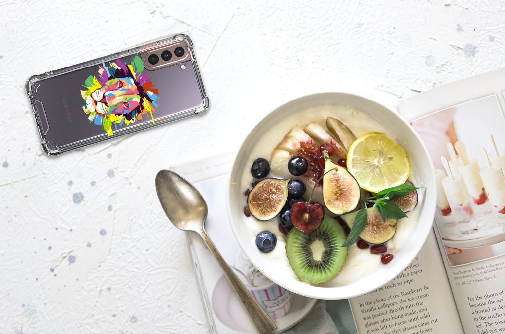 Ben je op zoek naar een uniek telefoonhoesje voor je Samsung Galaxy S21 Plus? Dan ben je bij B2C Telecom aan het juiste adres! Speciaal voor jou hebben we dit prachtige Lion Color design in onze collectie hoesjes opgenomen. Het design wordt bedrukt op een Stevig Bumper Hoesje en is gemaakt van flexibel rubber. Het hoesje is perfect voor de actieve smartphonegebruiker door de opstaande randen/hoeken. Denk aan mensen die veel sporten, reizen of wandelen en net iets meer zekerheid willen als het op hun geliefde telefoon aankomt. Het design wordt alleen aan de bovenkant van het hoesje bedrukt en de randen blijven transparant. Aan de zijkanten zijn uitsparingen gemaakt waardoor je met gemak alle knoppen en poorten kunt bedienen. Wij adviseren om dit hoesje in combinatie met een screenprotector te gebruiken voor een langere levensduur van je telefoon. Wil je dit hoesje nog iets extra's geven? Voeg dan gratis je naam of een quote toe! Is dit design hoesje toch niet helemaal wat je zocht? Ontwerp dan zelf een hoesje in ons ontwerpprogramma.