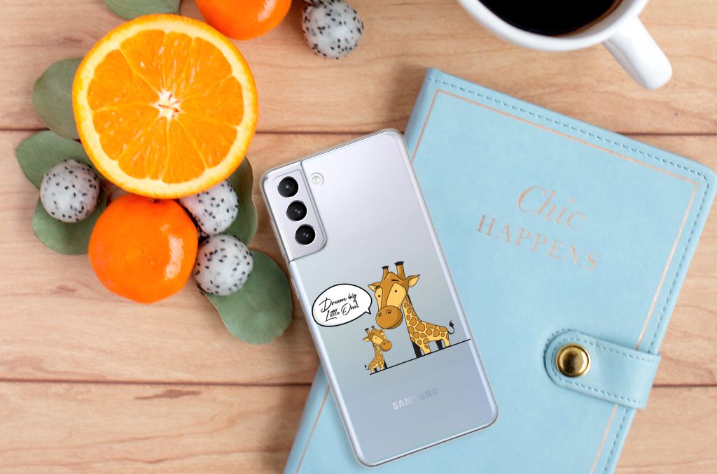 Ben je op zoek naar een uniek telefoonhoesje voor je Samsung Galaxy S21 Plus? Dan ben je bij B2C Telecom aan het juiste adres! Speciaal voor jou hebben we dit prachtige Giraffe design in onze collectie hoesjes opgenomen. Het design wordt bedrukt op een Telefoonhoesje met Naam en is gemaakt van flexibel rubber. Het design wordt alleen aan de bovenkant van het hoesje bedrukt en de randen blijven transparant. Aan de zijkanten zijn uitsparingen gemaakt waardoor je met gemak alle knoppen en poorten kunt bedienen. Wij adviseren om dit hoesje in combinatie met een screenprotector te gebruiken voor een langere levensduur van je telefoon. Wil je dit design hoesje nog iets extra's geven? Voeg dan gratis je naam of een quote toe! Is dit design hoesje toch niet helemaal wat je zocht? Ontwerp dan zelf een hoesje in ons ontwerpprogramma.